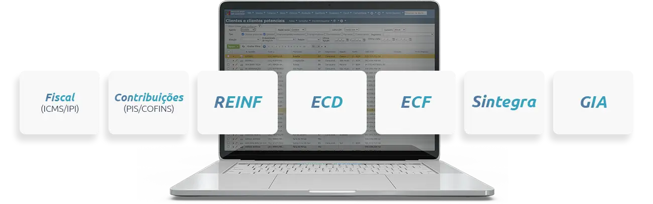 Com o ERP MAXIPROD, sua empresa garante a apuração dos impostos e emite automaticamente o SPED Fiscal, SPED Contribuições, Reinf, SPED Contábil, ECF, Sintegra e GIA.