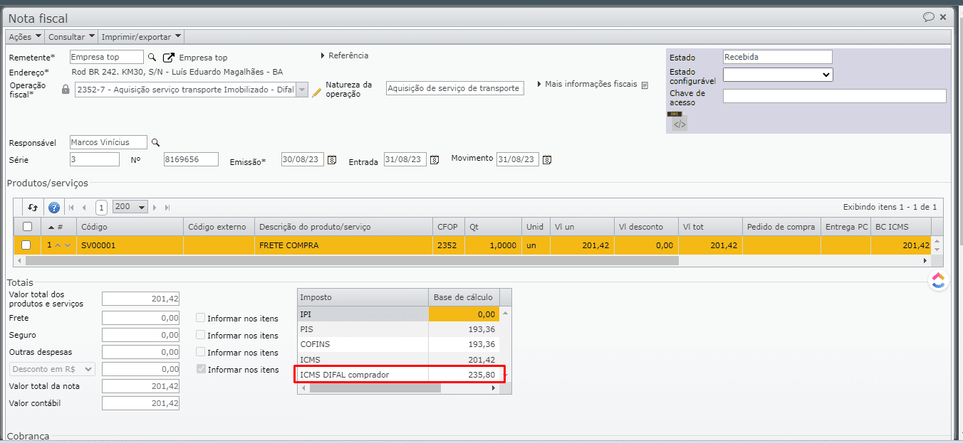 O ICMS DIFAL Comprador afeta apenas o custo do item da nota fiscal recebida (NFR), não afetando o valor total da nota fiscal recebida. Além disso, ele também impacta nos valores da apuração do ICMS e no registro C197 do SPED Fiscal (EFD ICMS IPI).