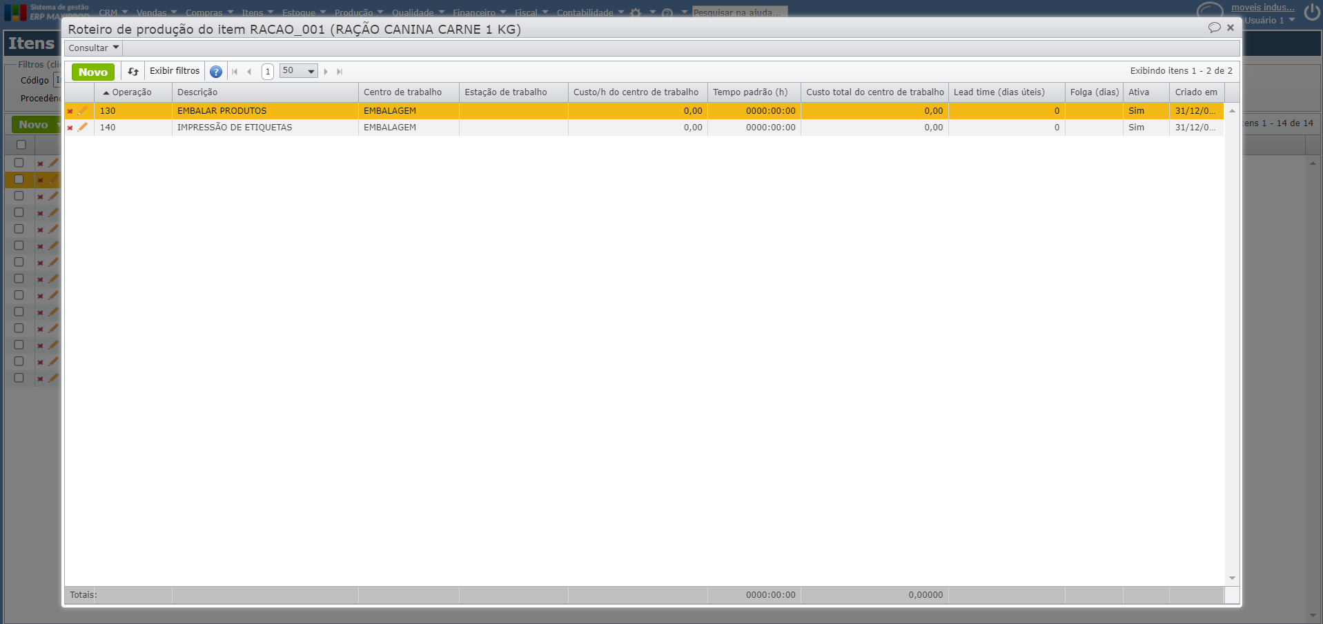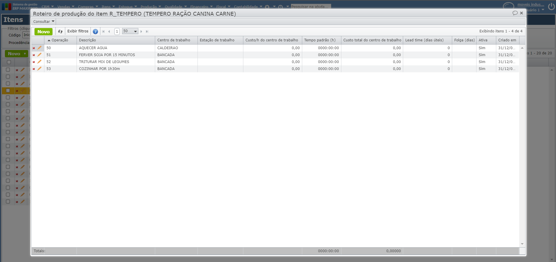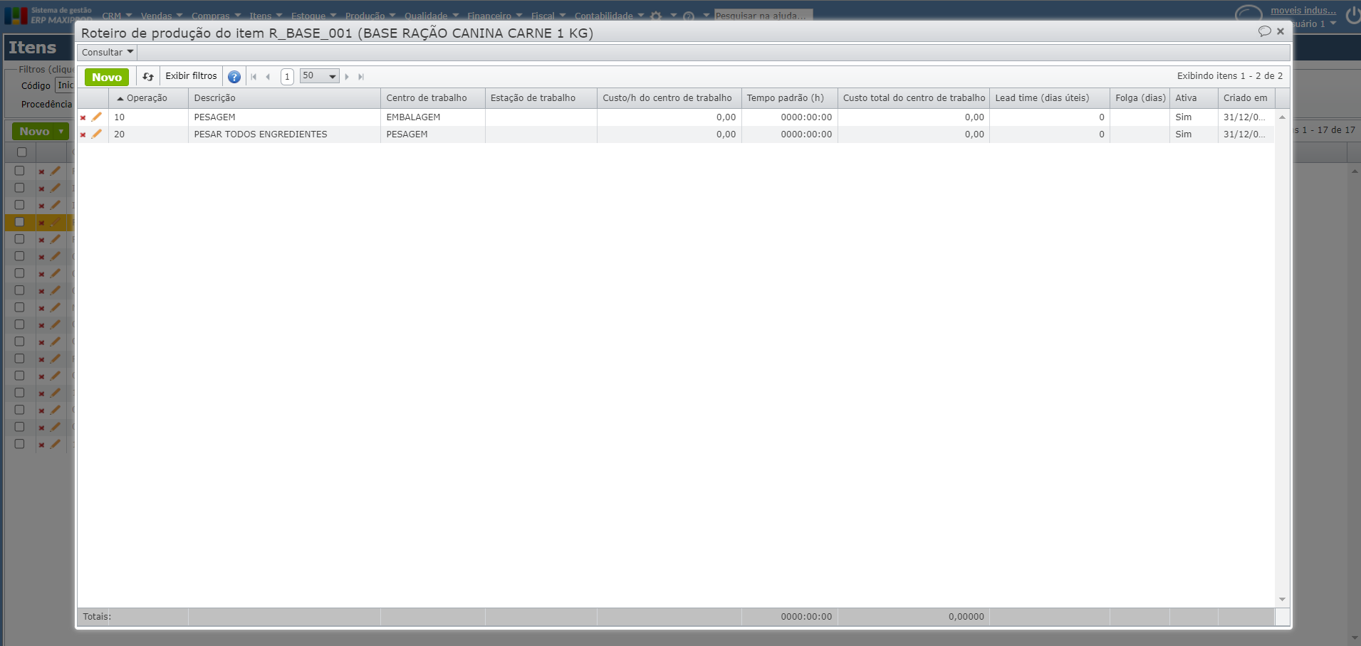 O roteiro de produção do mesmo item “RACAO_001” é: