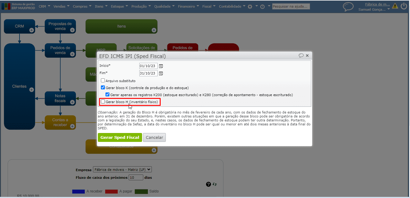 Como gerar a EFD ICMS IPI (SPED Fiscal) com bloco H (inventário físico)?