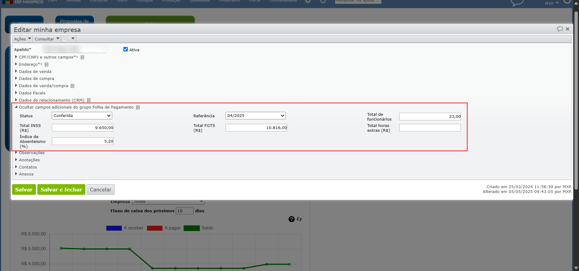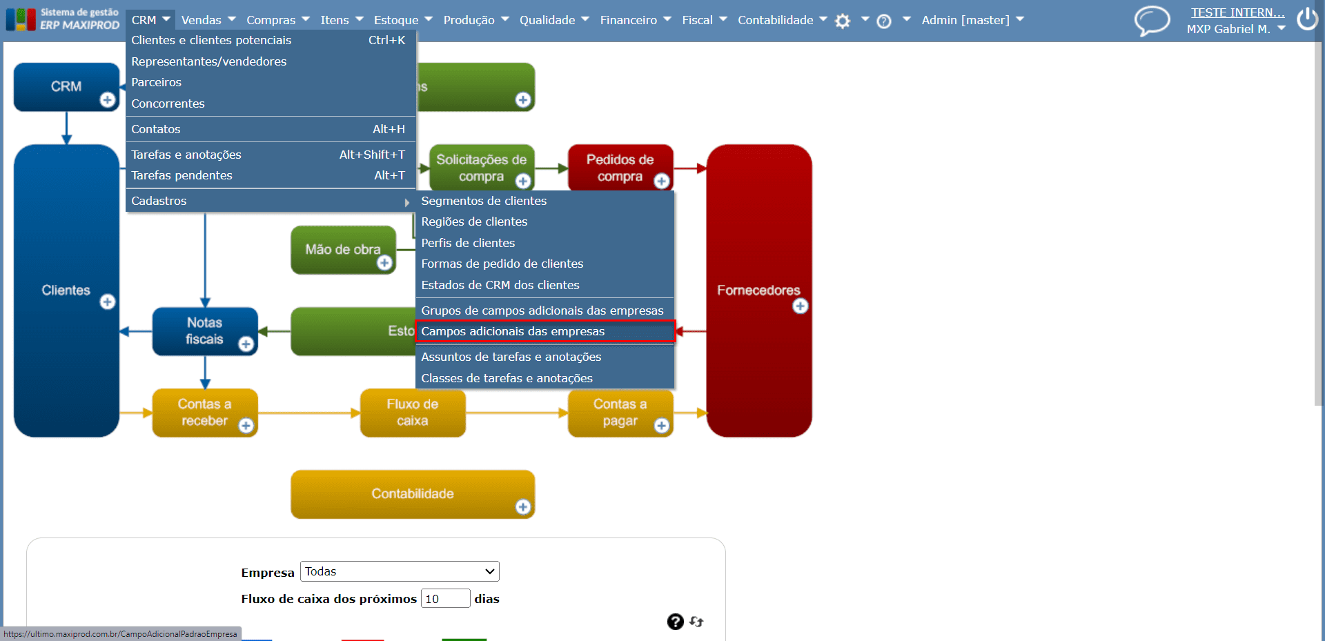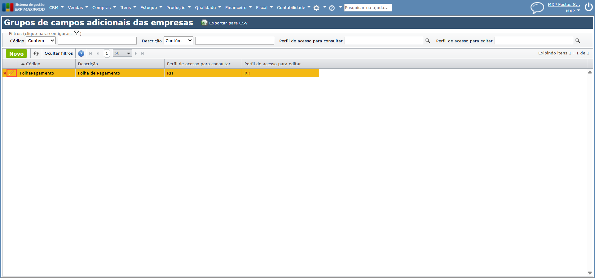 No ERP MAXIPROD, pode-se criar campos adicionais nos cadastros de empresa. Estes campos podem ser agrupados, melhorando a visualização e o preenchimento.