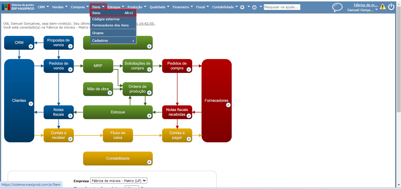a) Para isso, acesse o menu superior “Itens > Itens”.