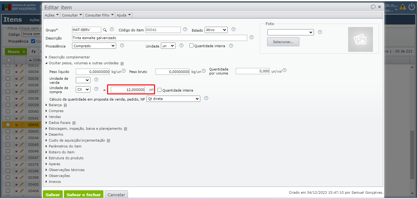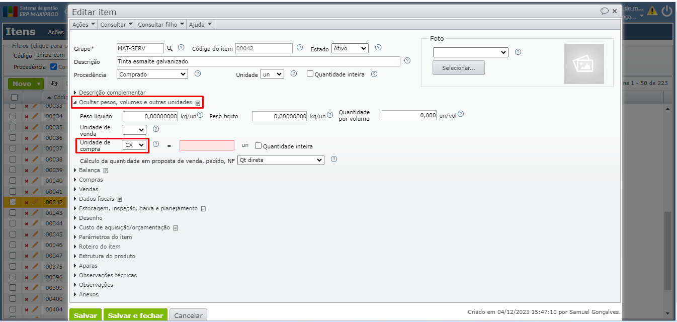 - Como cadastrar a unidade de compra e fator de conversão do item?