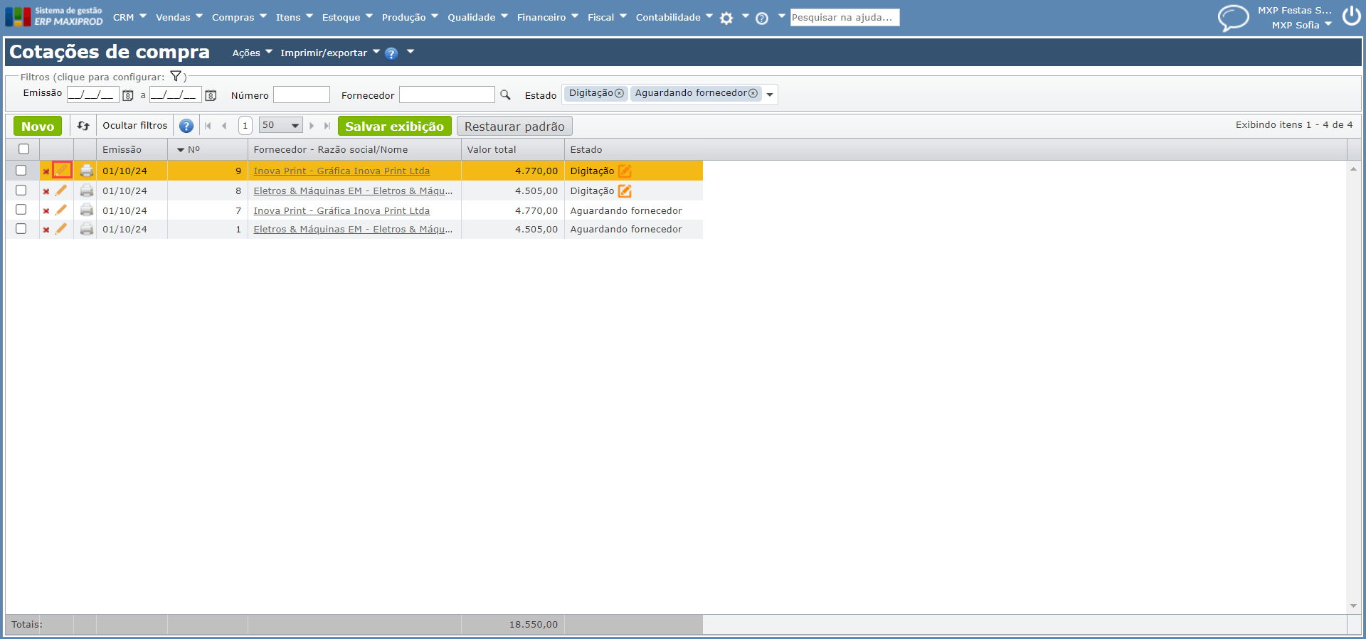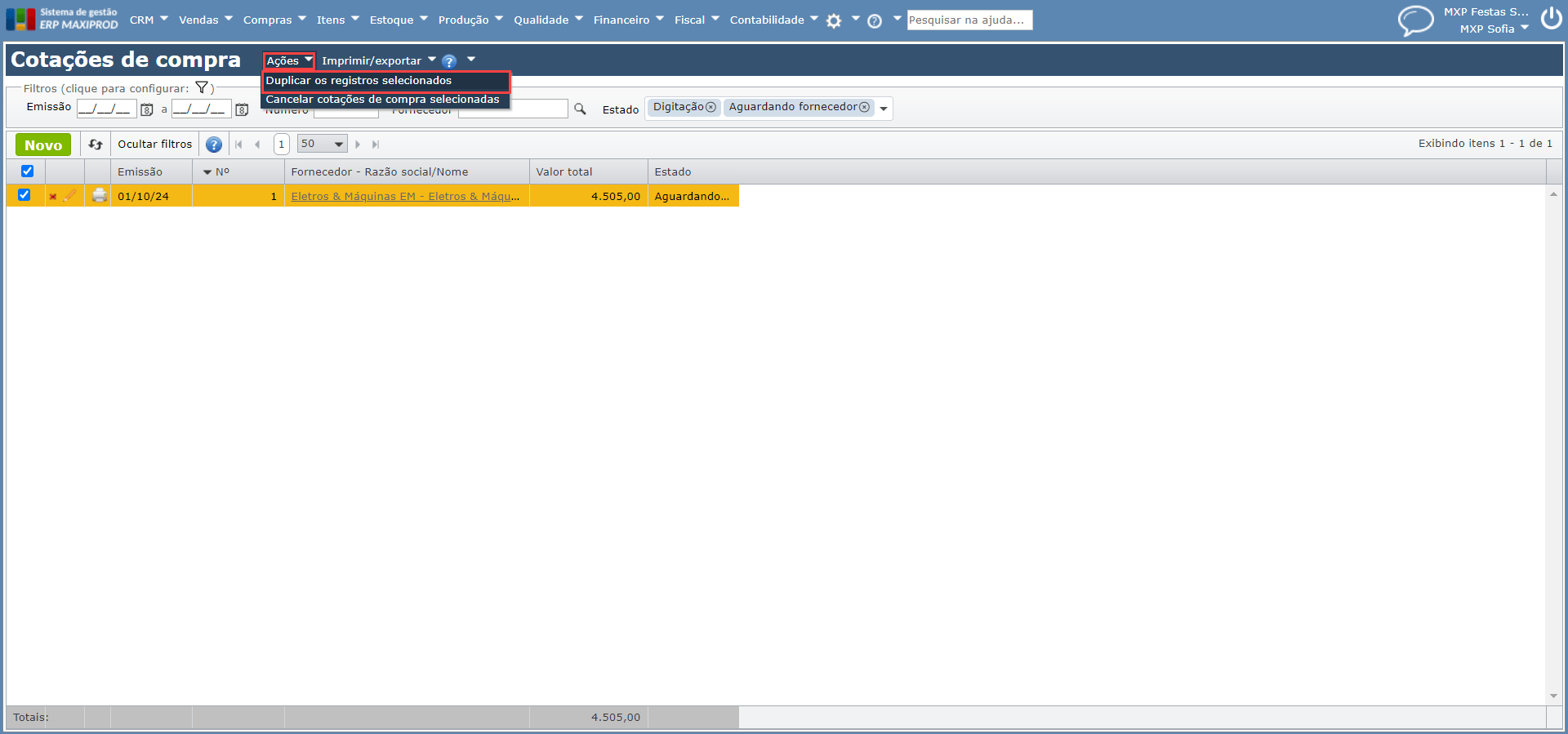 Cotações de compra permitem a análise de preços e fornecedores, visando a melhor oferta. Para agilizar sua criação, quando uma cotação é semelhante a outra, pode-se duplicar registros e alterar os dados diferentes, seguindo os passos abaixo.