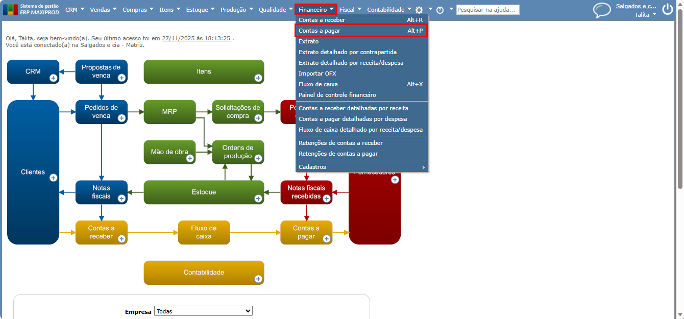 a) Acesse a opção “Financeiro > Contas a pagar”.