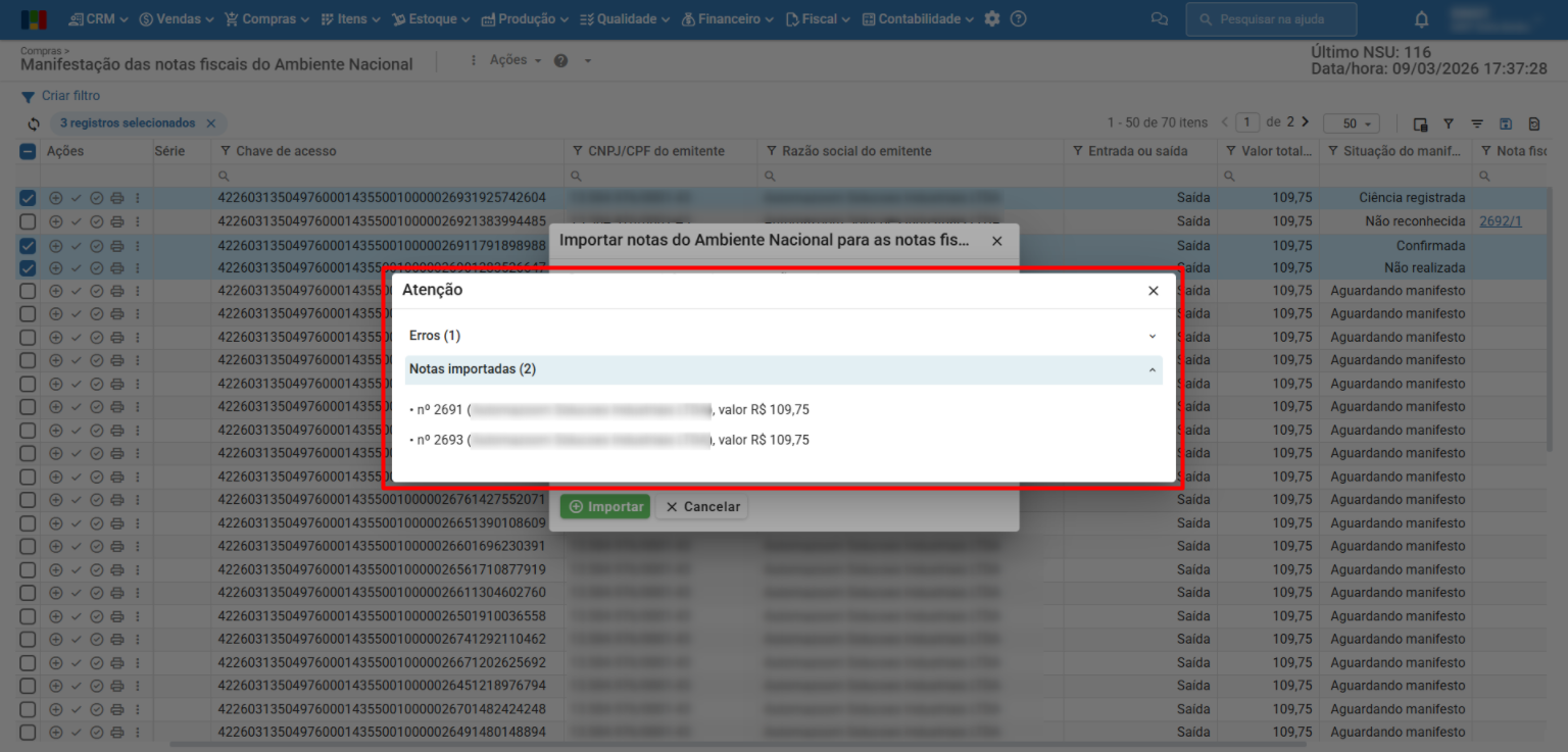 Como importar notas fiscais recebidas usando a manifestação de notas?