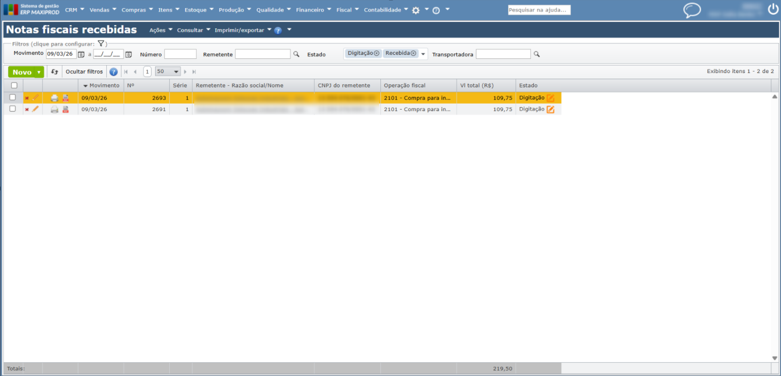Importante: esta página se refere à nova versão do ERP MAXIPROD. Se ainda não fez a migração da consulta de notas recebidas pelo Ambiente Nacional, entre em contato com o suporte. Veja as novidades da nova versão, clicando aqui.