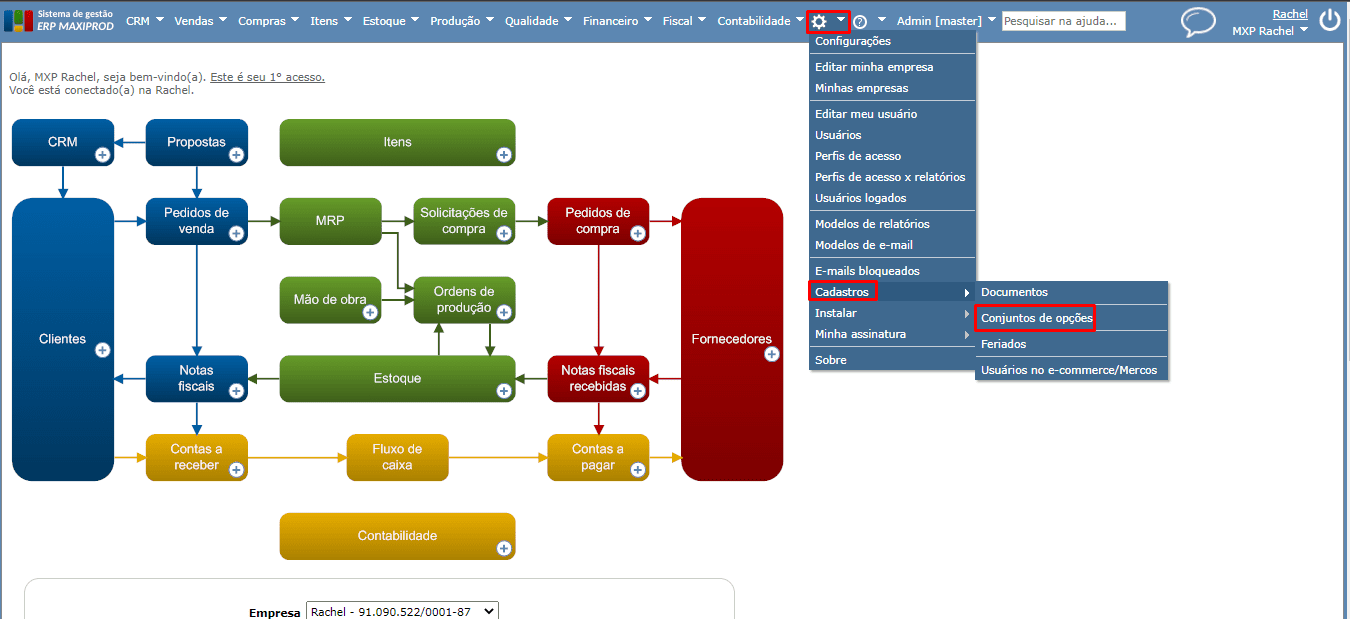 ) > Cadastros > Conjuntos de opções”: