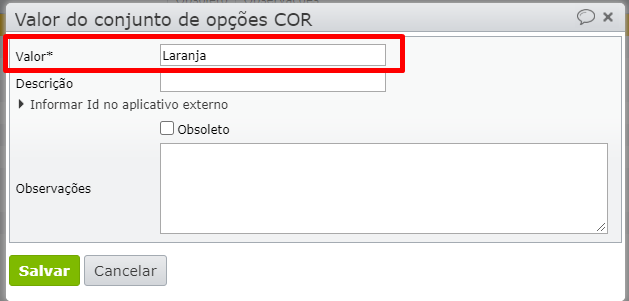 4) Preencha o campo Valor e clique em “Salvar”.
