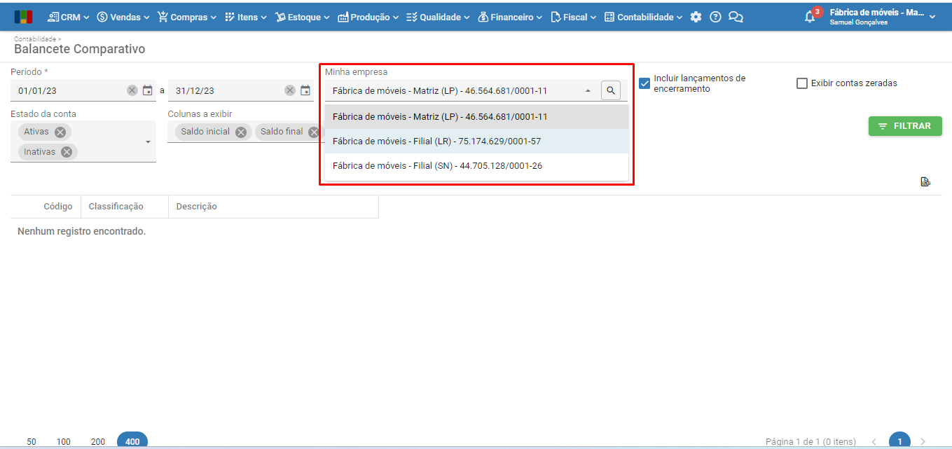4) Se sua empresa assina o opcional “Multi-CNPJ” utilize o filtro “Minha empresa” para selecionar a empresa.