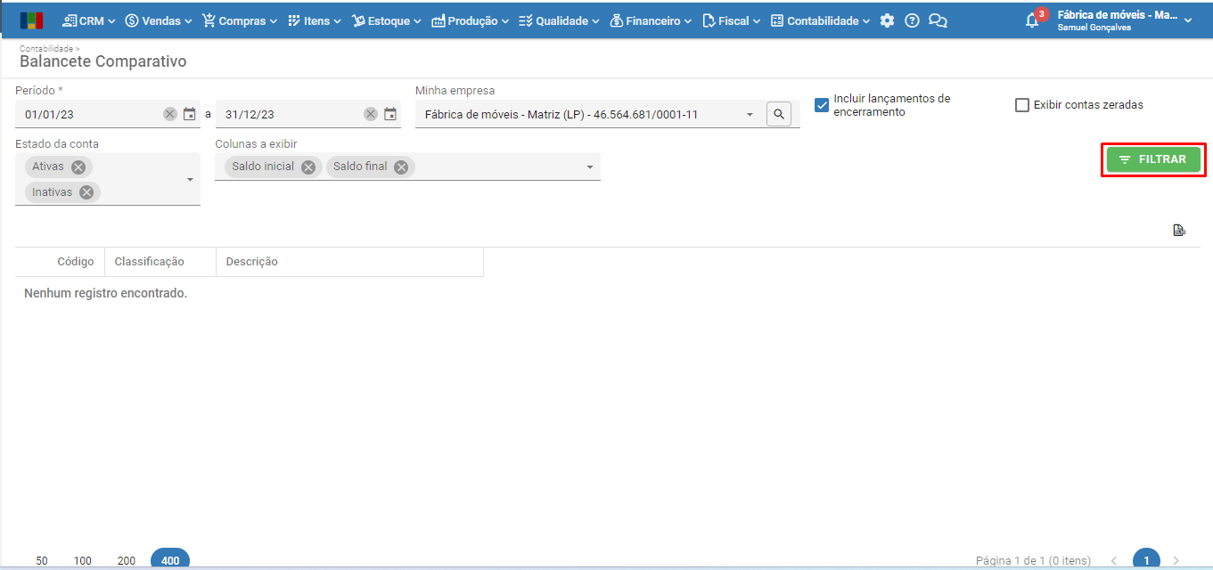 5) Após preencher os filtros, clique no botão verde “Filtrar” para ver os resultados na tela.