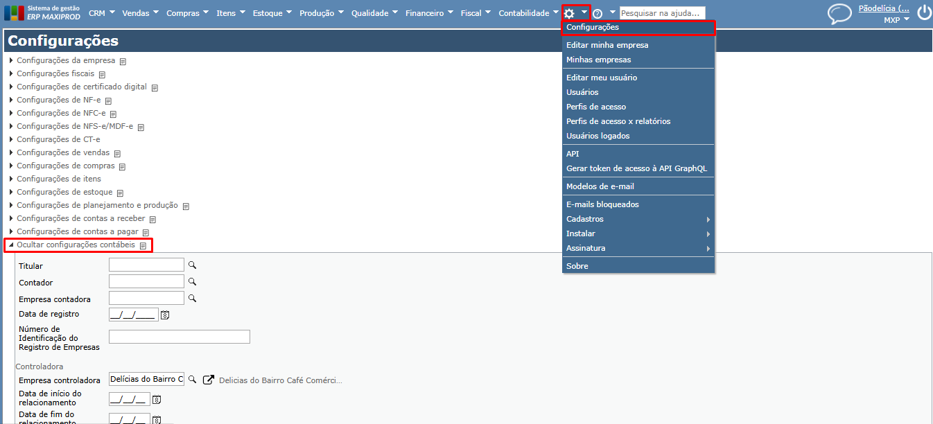 O cadastro do contador ou empresa contadora no ERP MAXIPROD pode ser necessário para geração do SPED ou até mesmo para informar a autorização no XML de notas fiscais.
