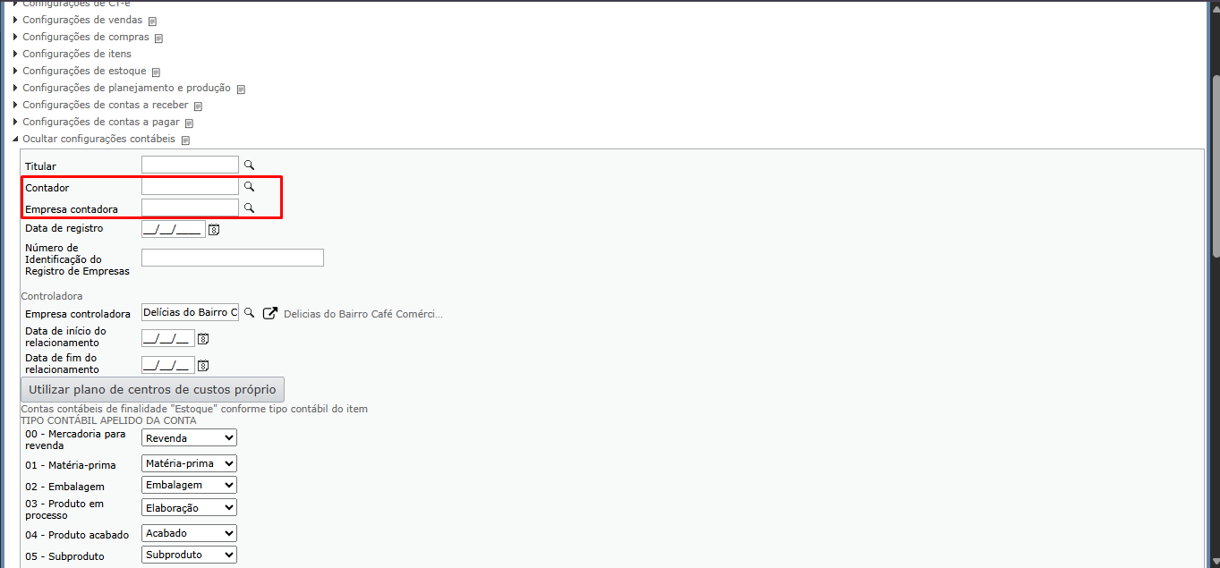 c) O campo “Empresa contadora”, busca empresas do tipo “Fornecedor”. Por isso, verifique se a empresa foi cadastrada corretamente.
