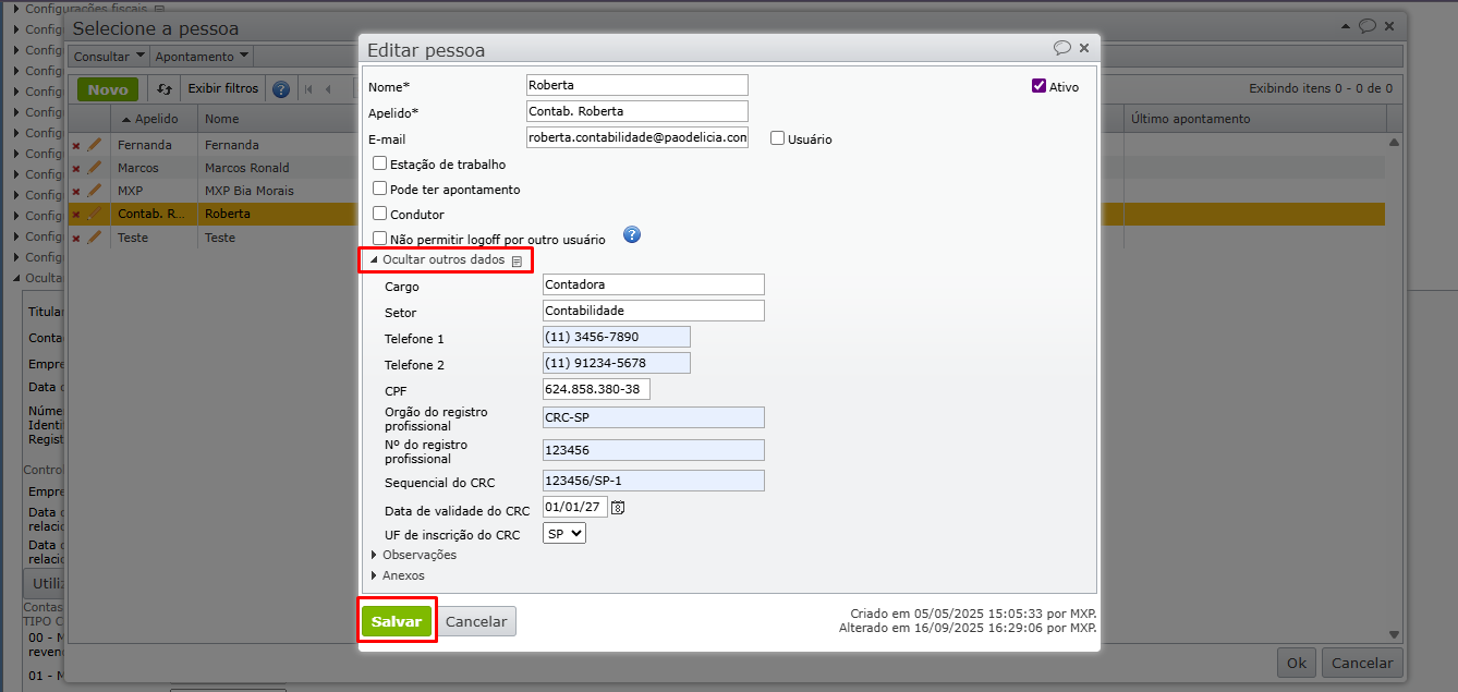 a) Na janela de seleção de pessoa, pode-se cadastrar o contador, através do botão “Novo”, ou selecionar uma pessoa existente.