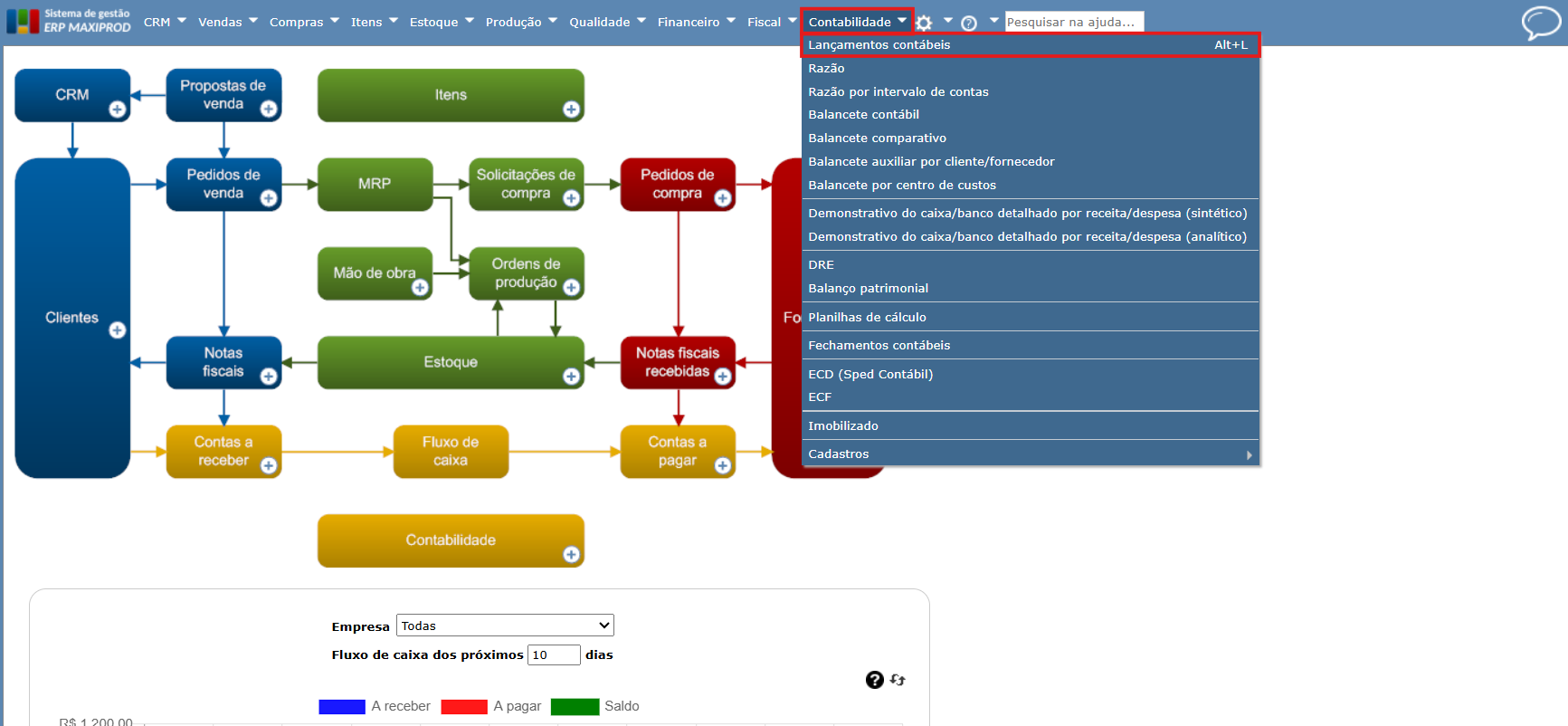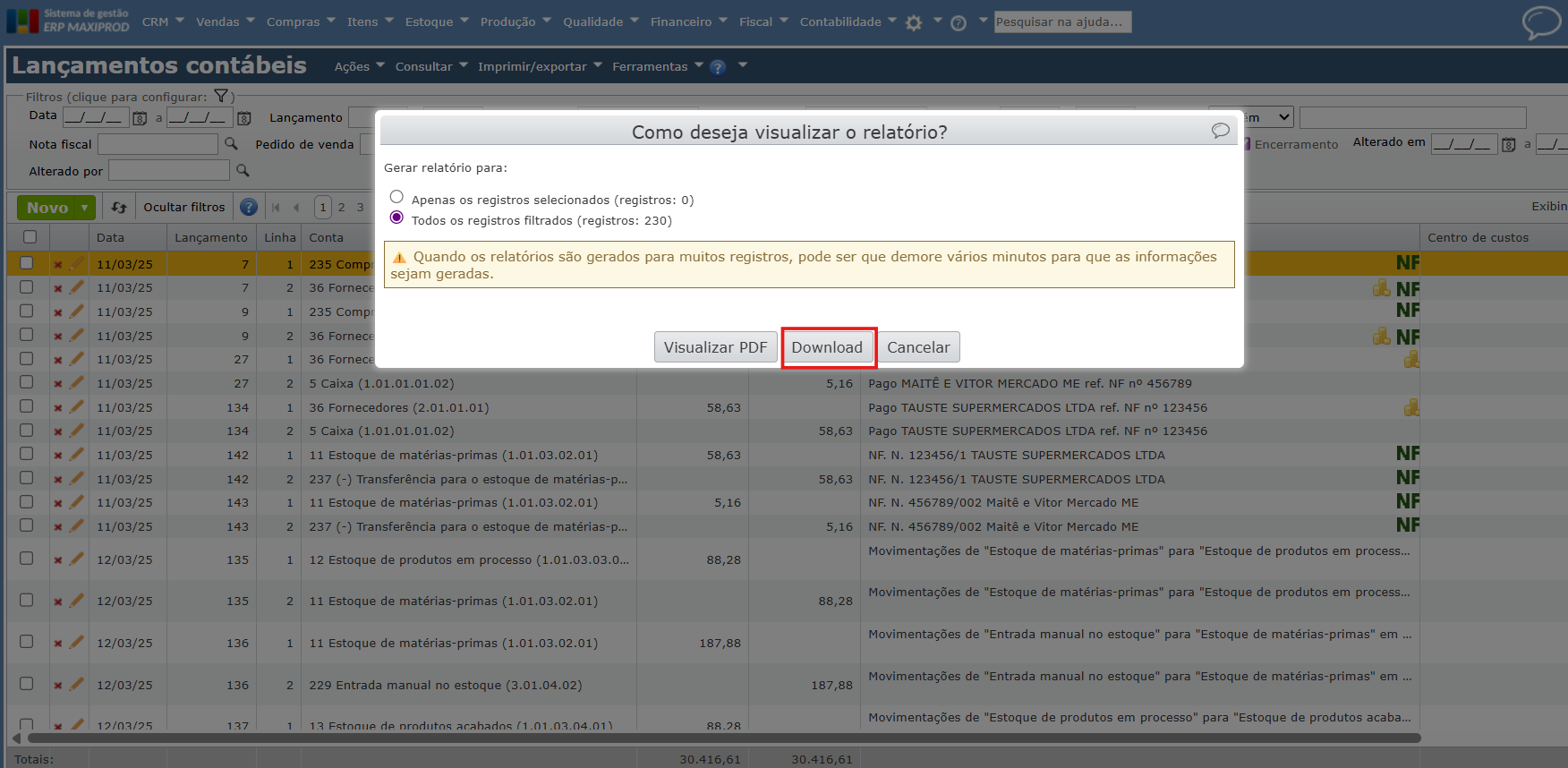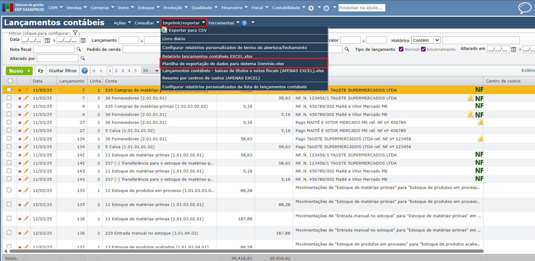 Este guia explica o processo para exportar lançamentos contábeis do ERP MAXIPROD para o sistema Domínio.