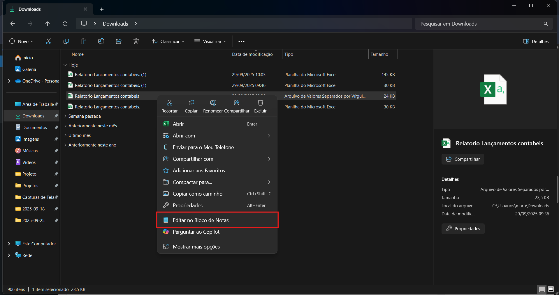 2) Abra o arquivo com um editor de texto, como o bloco de notas.
