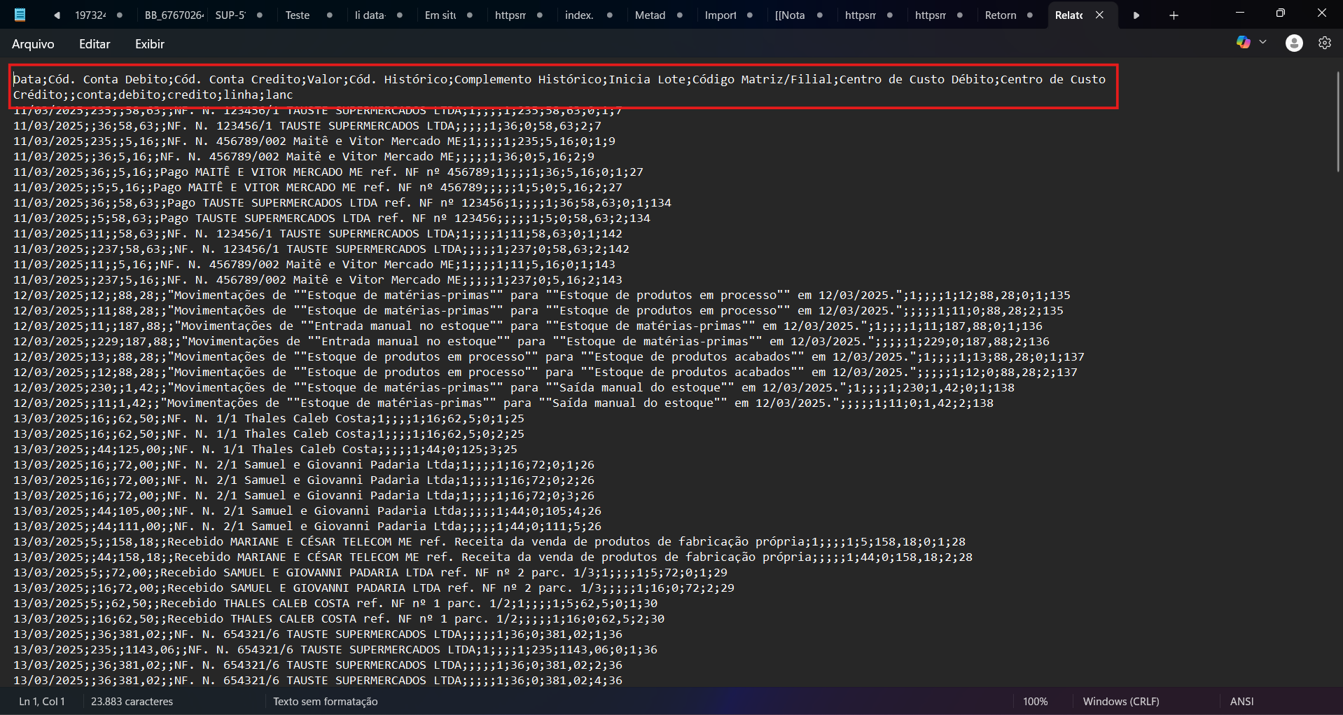 5) Utilize o arquivo .txt para importação no sistema Domínio.
