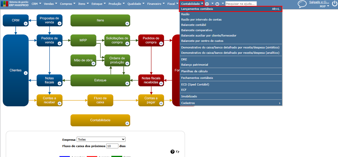 Através deste relatório no gerado pelo ERP MAXIPROD, pode-se visualizar todas as operações contábeis da empresa num período específico.