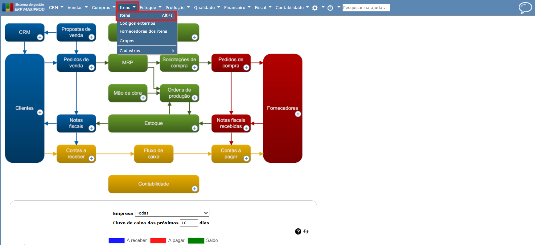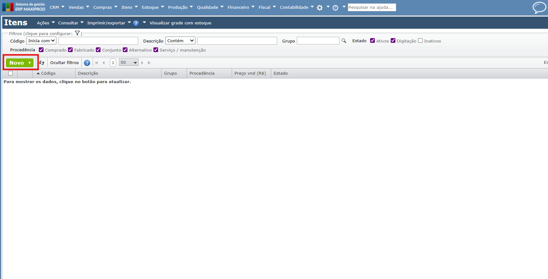 1) Acesse a tela de itens através do menu “Itens > Itens”.