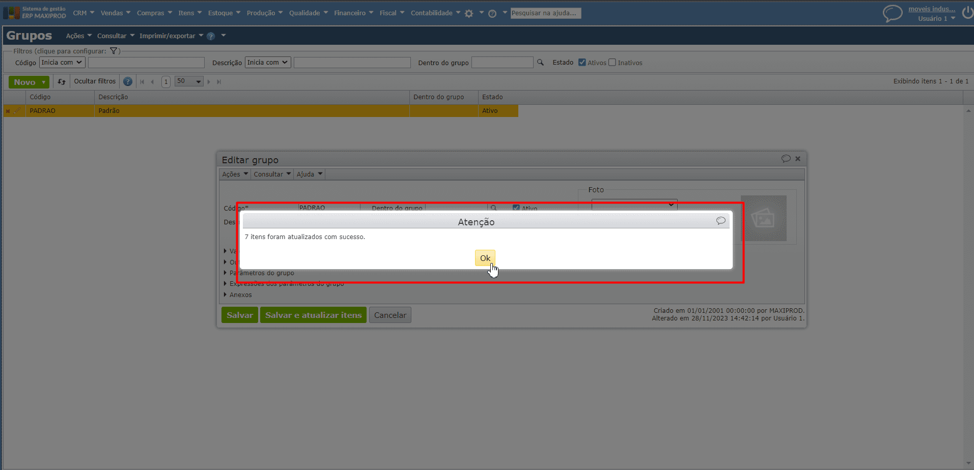 5) Será exibida uma caixa de diálogo, informando quantos itens do grupo foram alterados.
