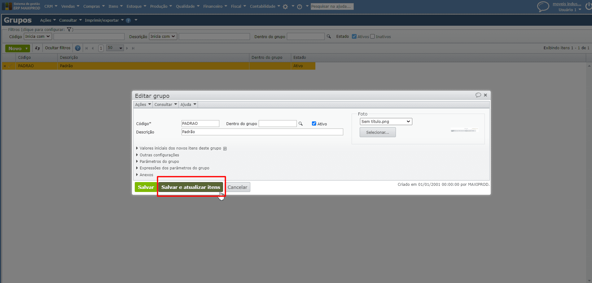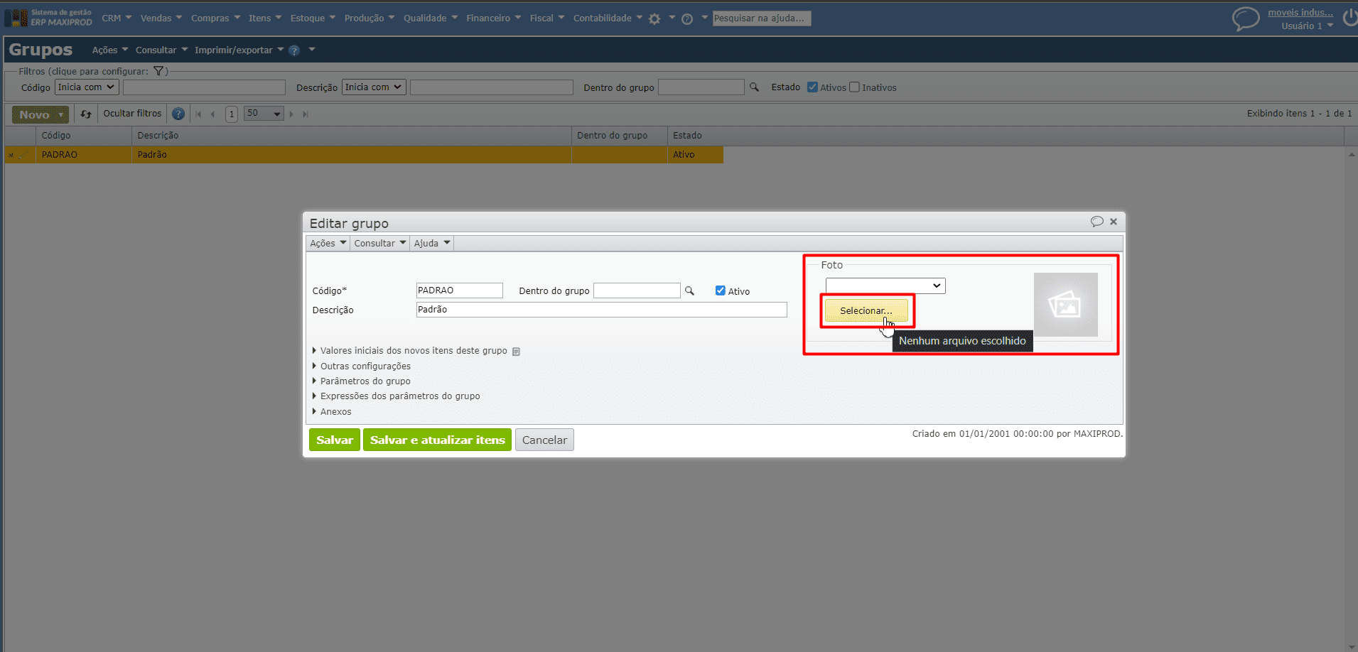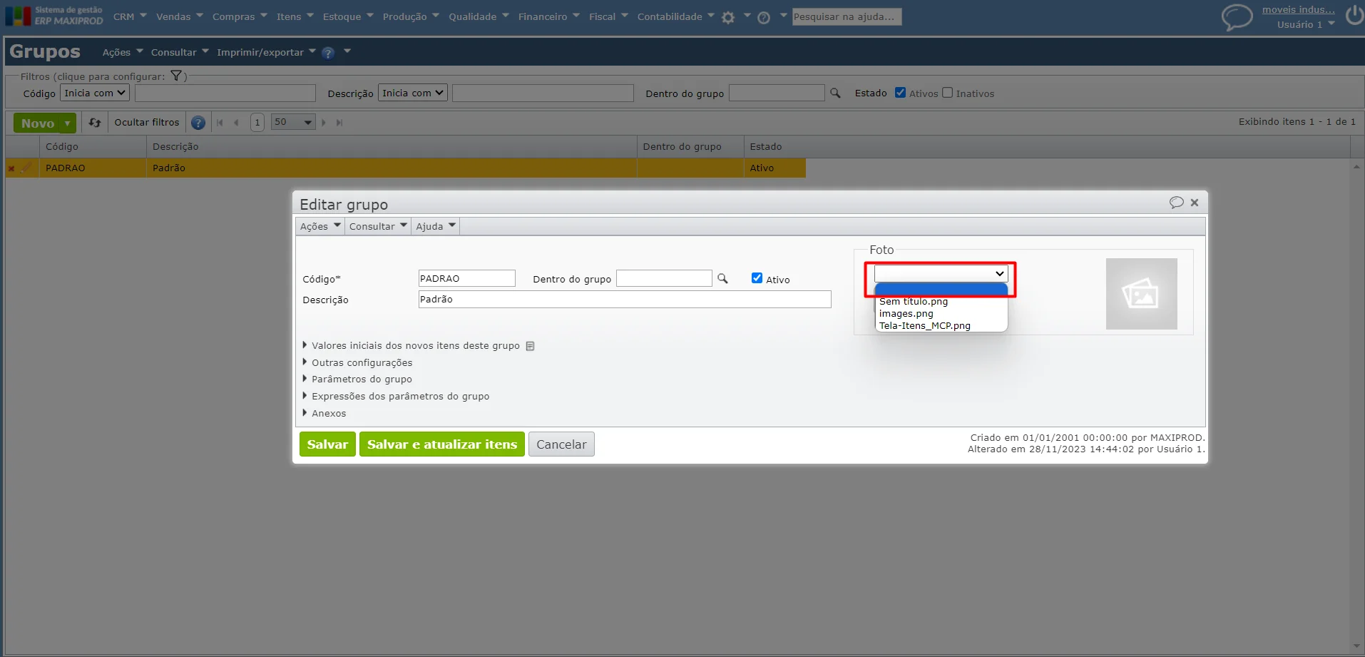 4) Após selecionada a imagem, associe-a a todos itens do grupo através do botão verde “Salvar e atualizar itens“.