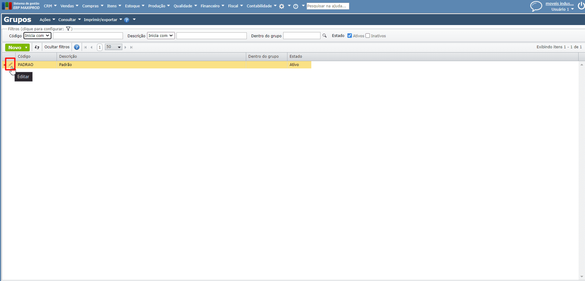 2) A seguir, procure o grupo ao qual pertencem os itens, e clique no ícone “lápis laranja“.