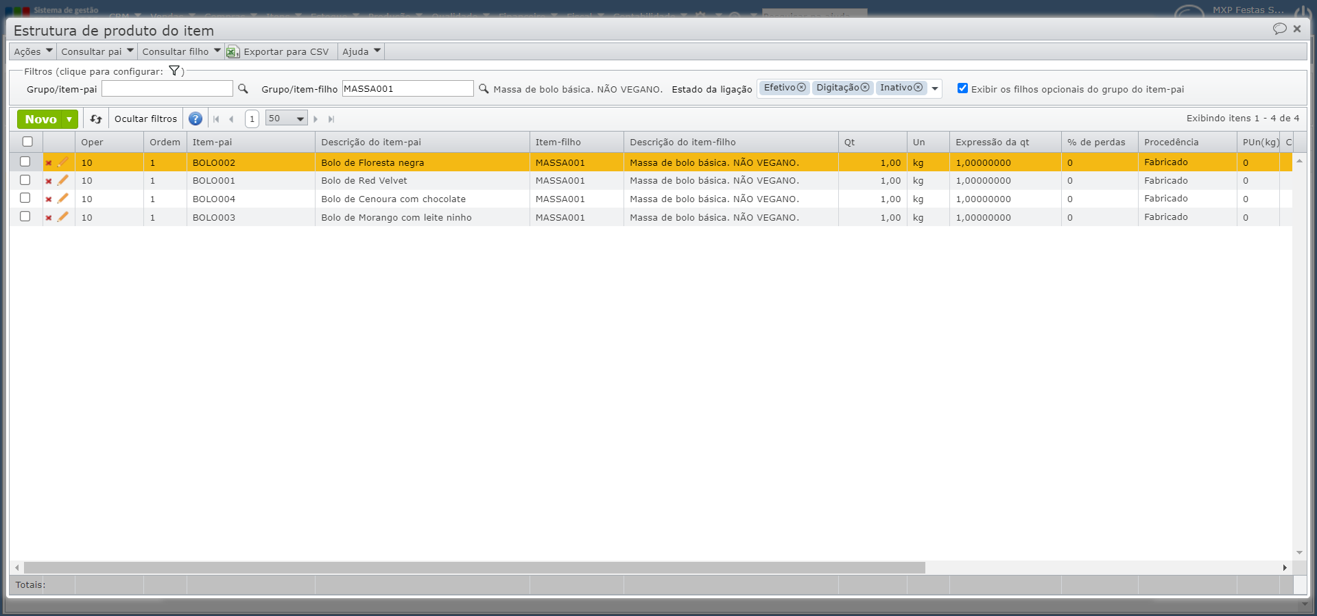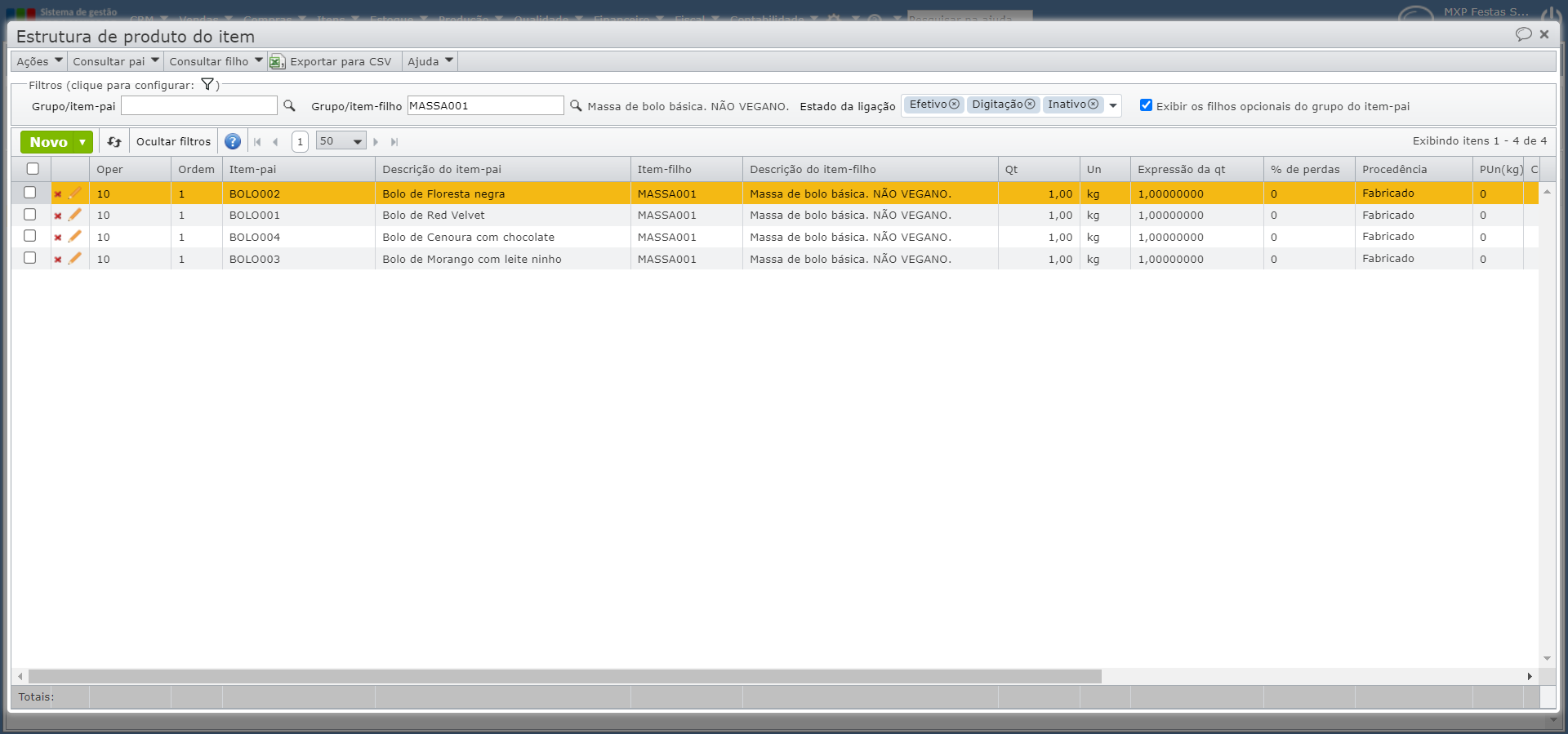3) Serão listados todos os itens-pai, ou seja, os produtos nos quais o item consultado está presente em suas estruturas.