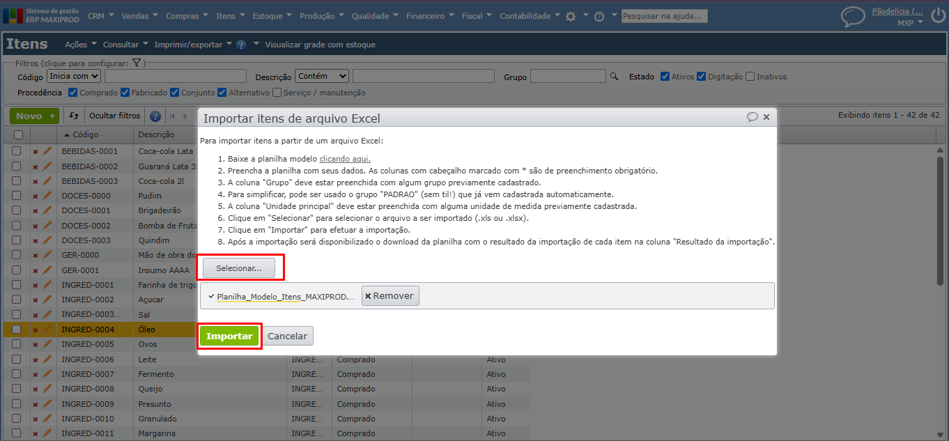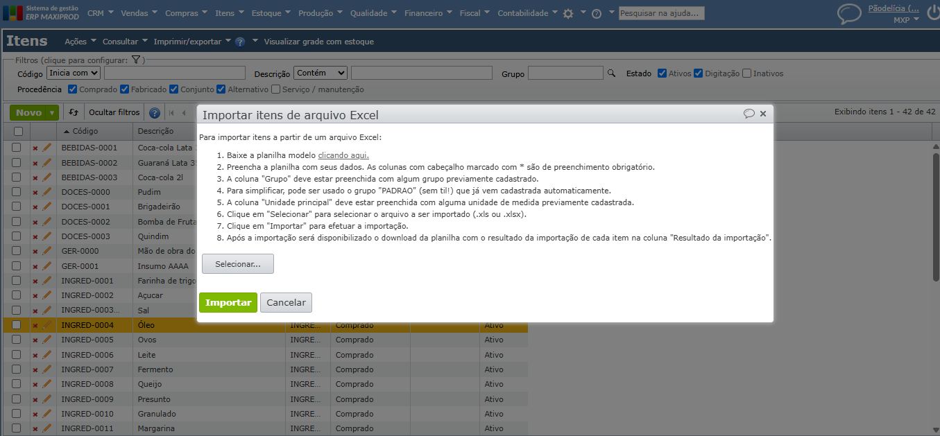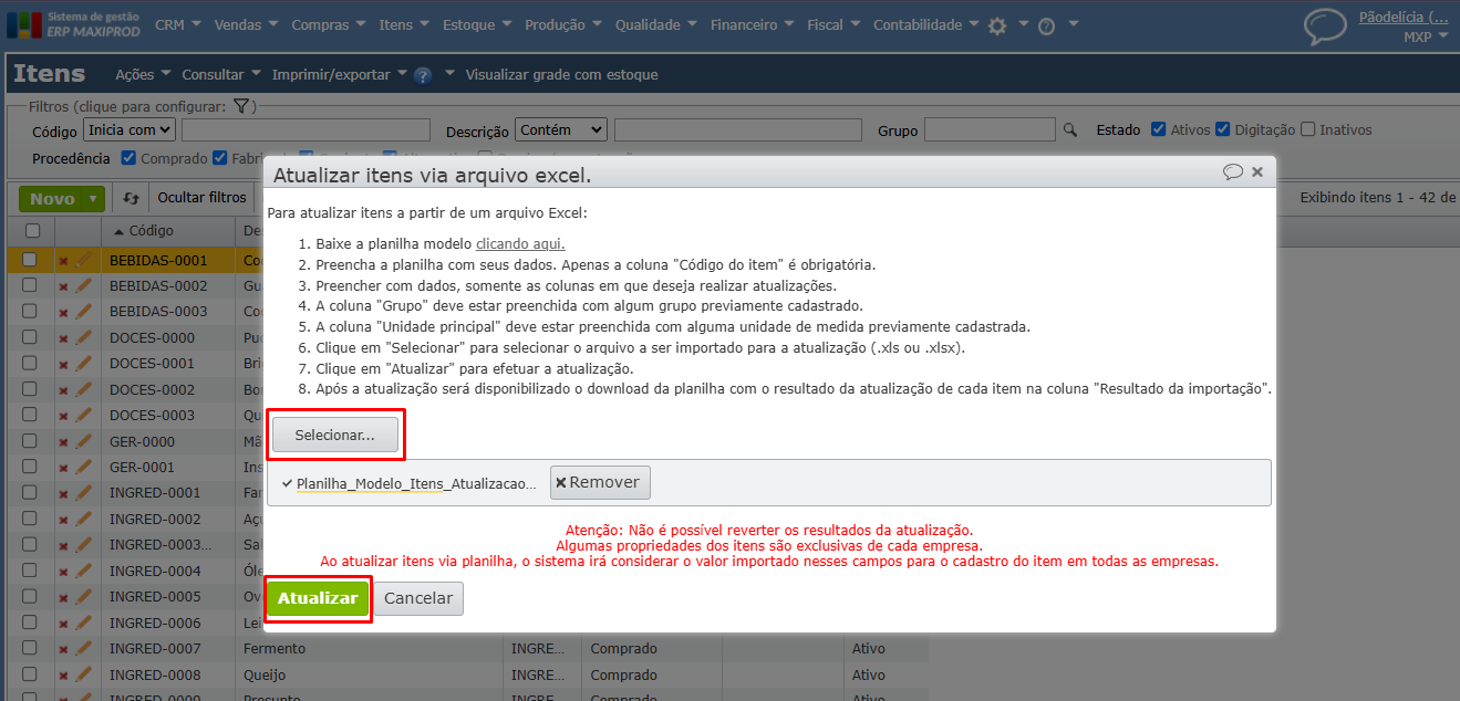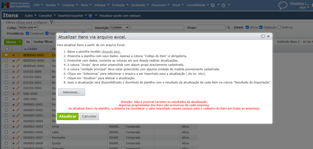 - Como atualizar o cadastro de itens em massa via Excel?