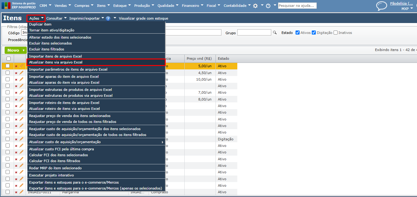 Como atualizar o cadastro de itens em massa via Excel?