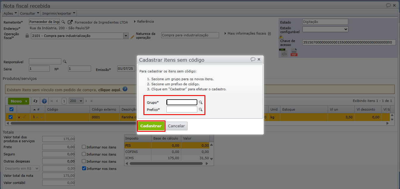 Como cadastrar itens a partir de uma nota fiscal recebida?