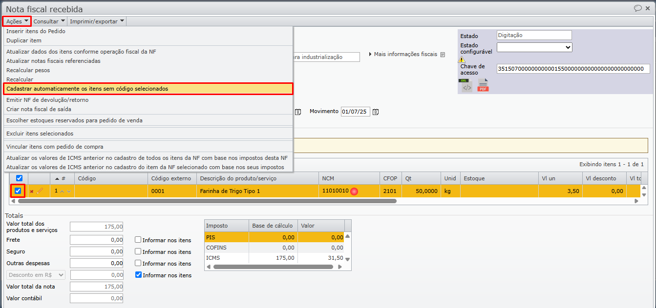 - Como cadastrar itens a partir de uma nota fiscal recebida?