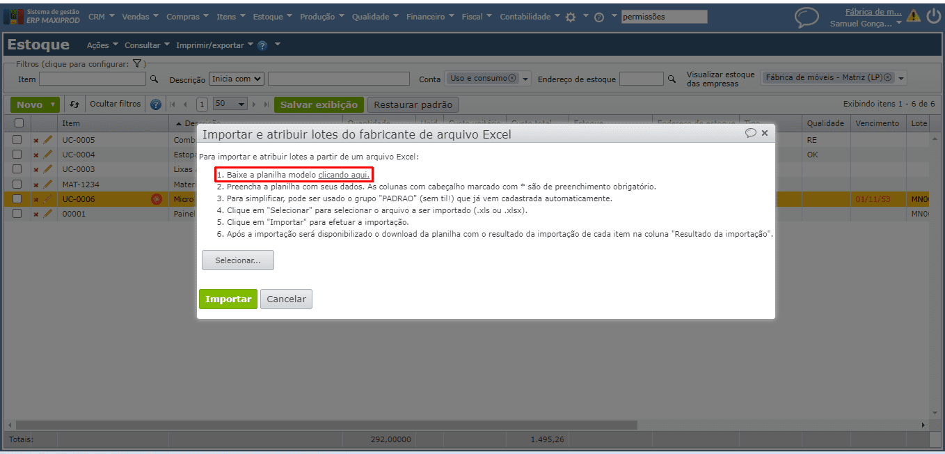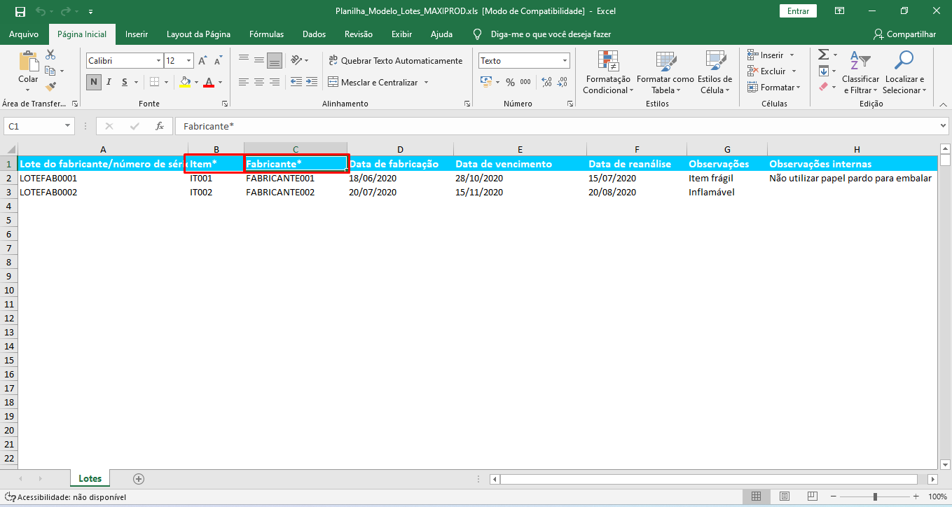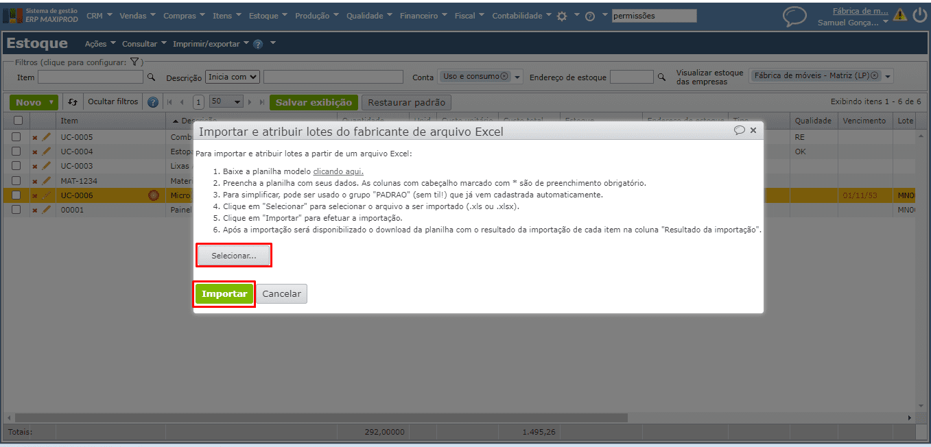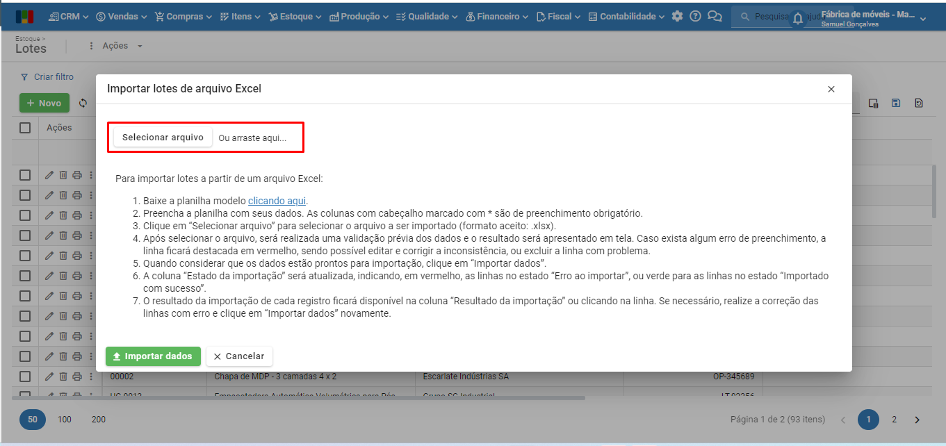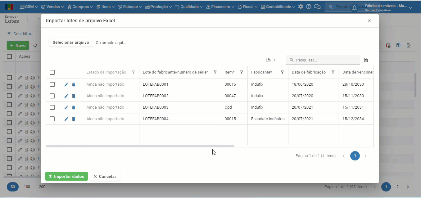 - Como atribuir lote do fabricante/número de série importando de Excel?