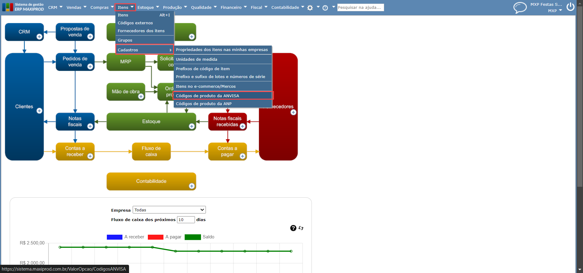 1) Acesse a tela “Itens > Cadastros > Códigos ANVISA”;