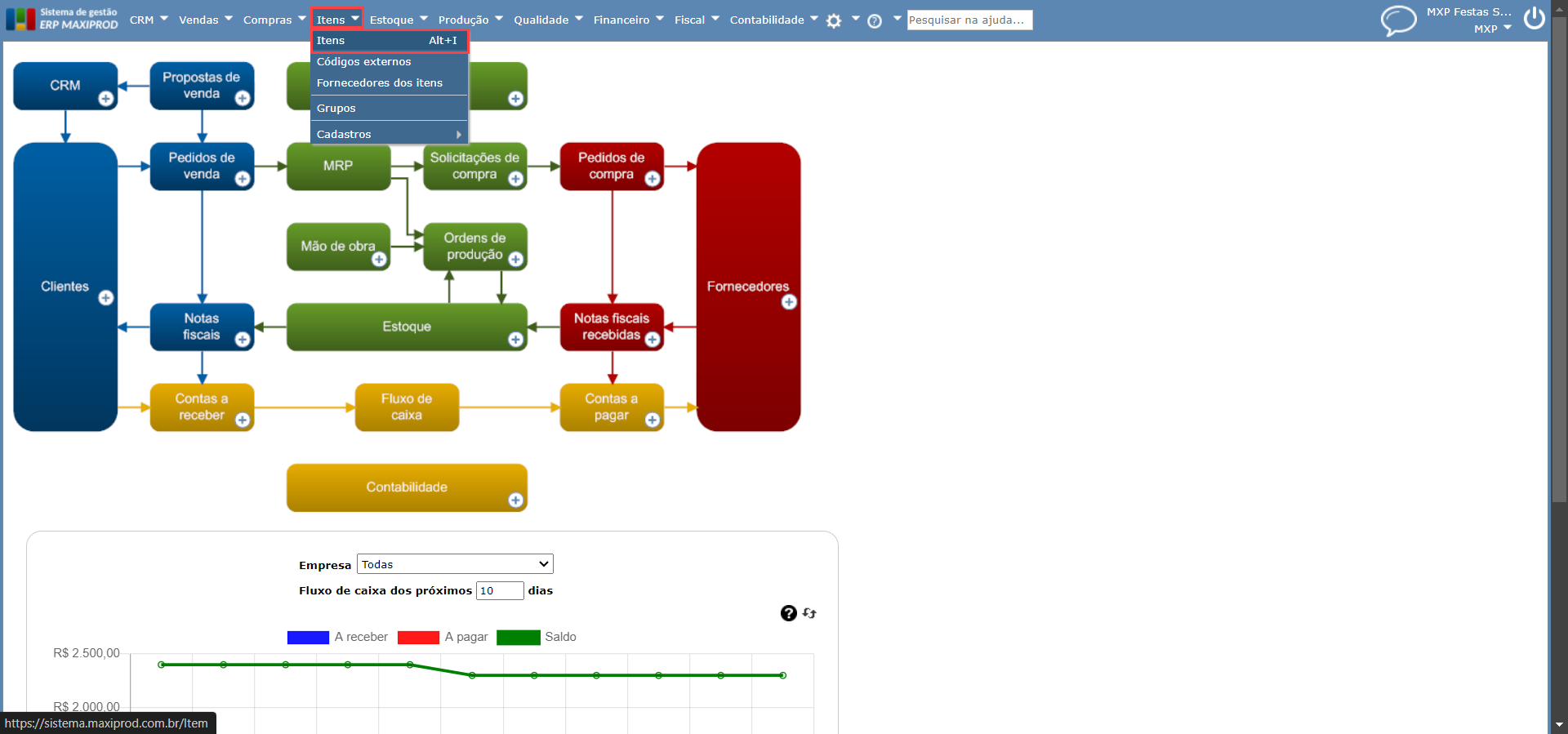 5) Após anotar a descrição do código, acesse “Itens > Cadastros > Códigos ANVISA”;