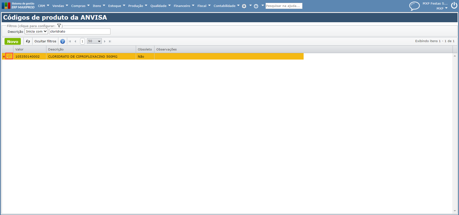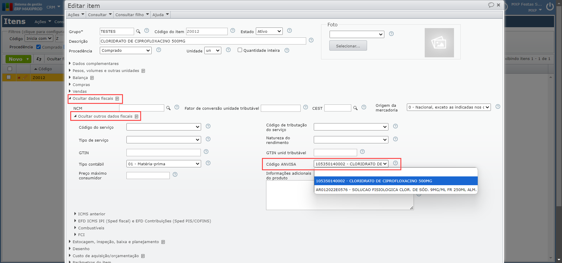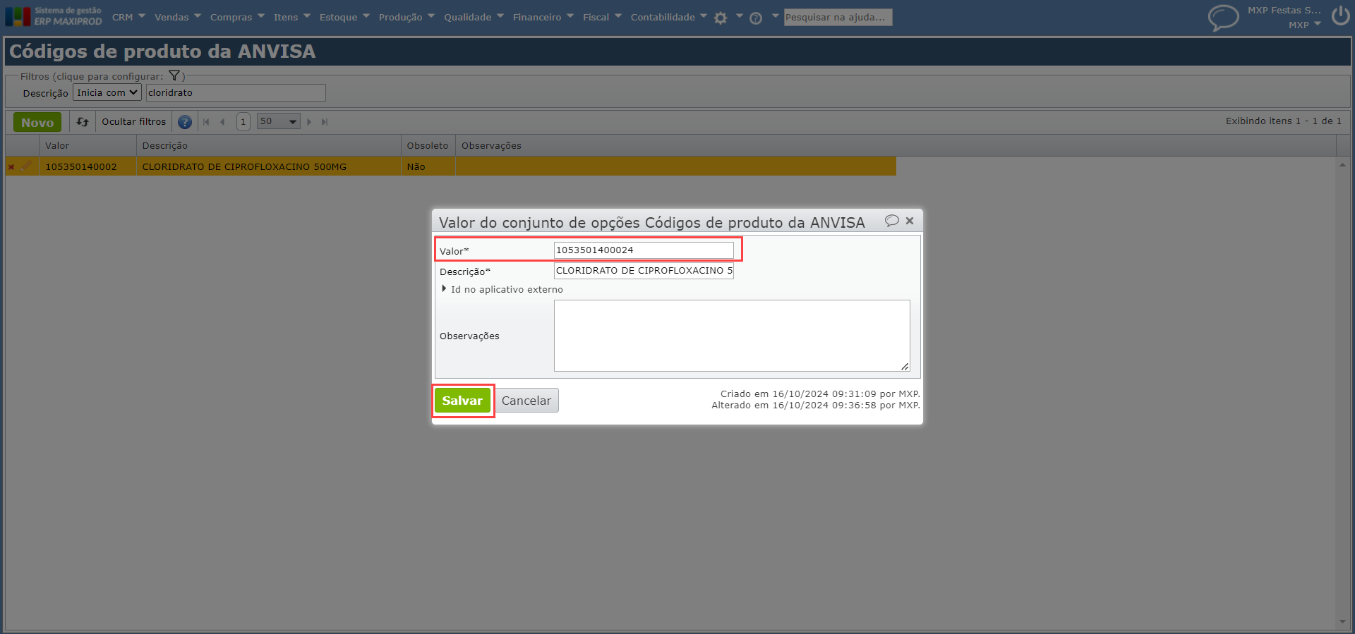 Para corrigir a situação, será preciso alterar o código ANVISA cadastrado no ERP MAXIPROD.