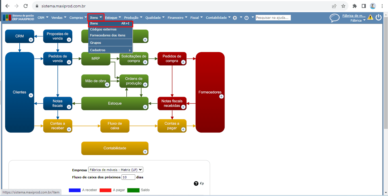 4) Após cadastrar os códigos de produtos na ANVISA, retorne ao menu “Itens” e opção “Itens”.
