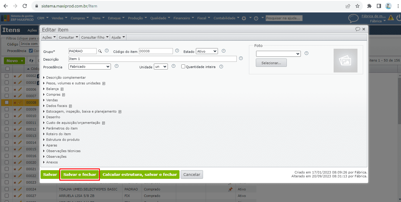 8) Em seguida, no rodapé da janela de edição do item, salve as alterações.
