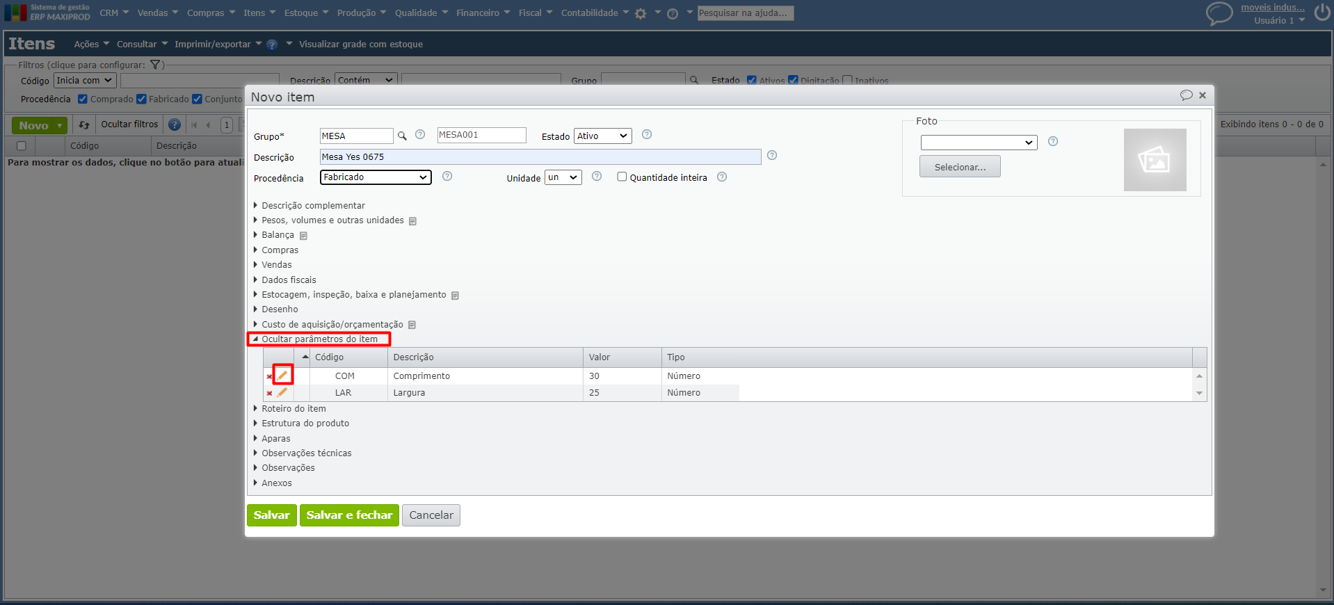 No vídeo abaixo, apresentamos os parâmetros de itens no ERP MAXIPROD: