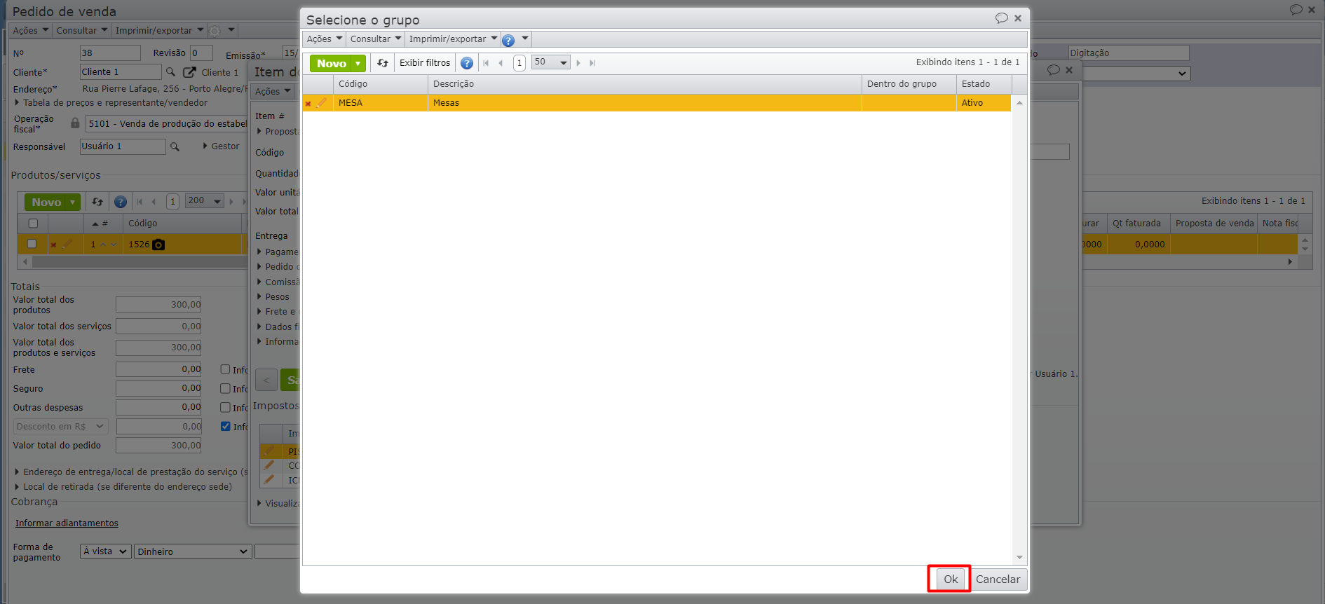 5) Ao clicar, é aberta a tela de seleção do grupo. Clique sobre o grupo ao qual pertence o item e clique “Ok”.