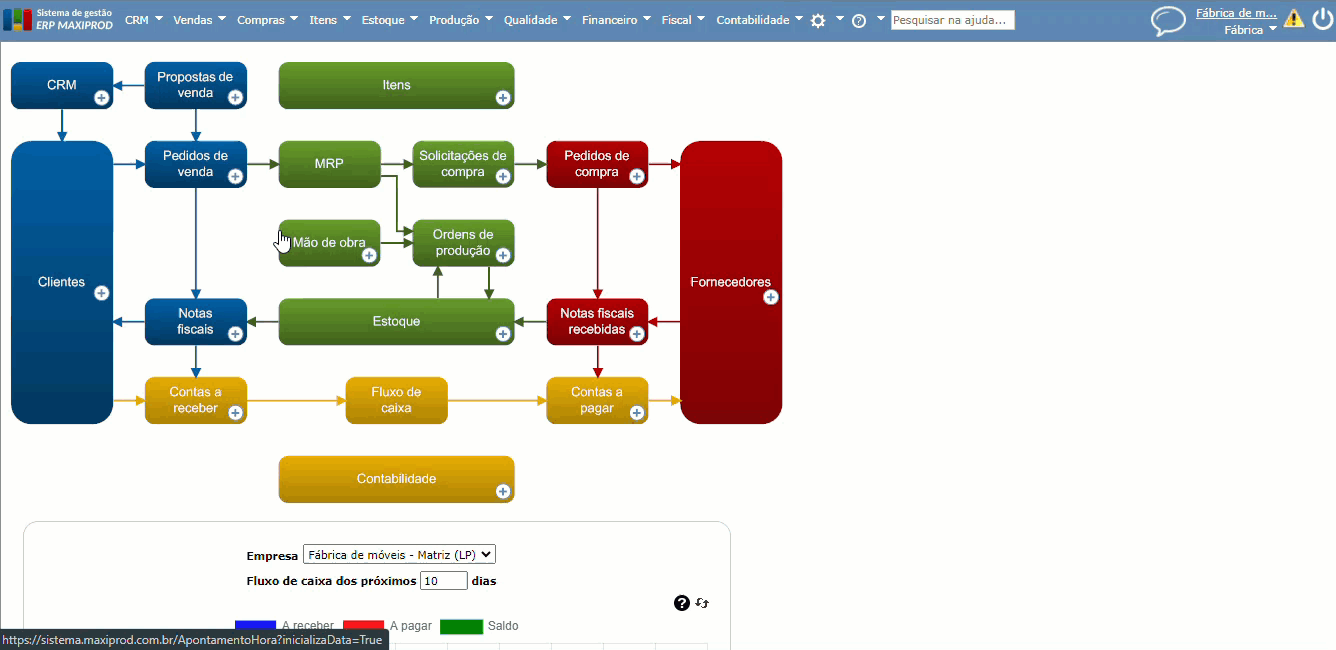 No ERP MAXIPROD, os insumos utilizados diretamente na produção são baixados para as ordens de produção OPs). Estas baixas incorporam o custo do insumo ao custo do produto em elaboração e, na conclusão da OP, o custo do produto em elaboração é agregado ao custo da quantidade concluída do produto.