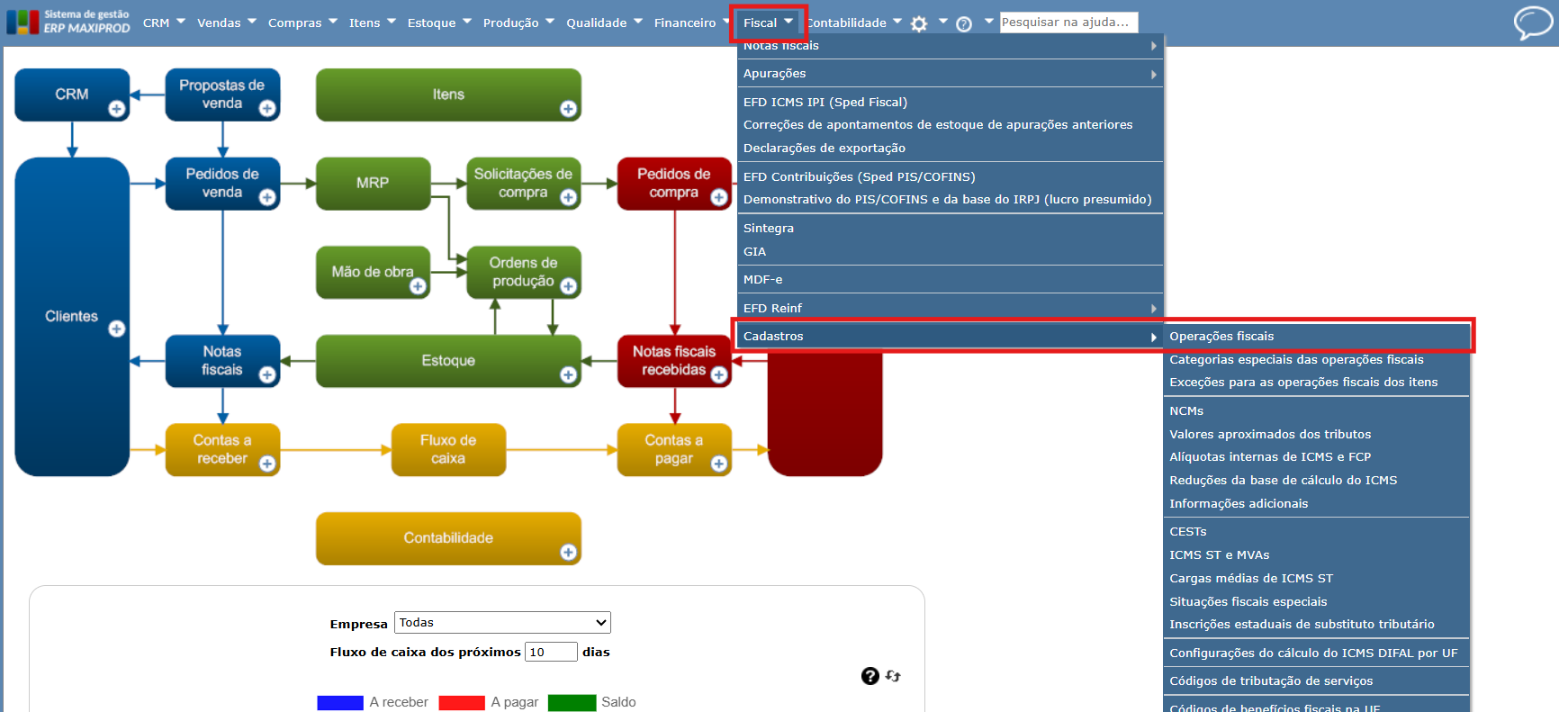 1) Acesse o menu “Fiscal > Cadastros > Operações fiscais”.