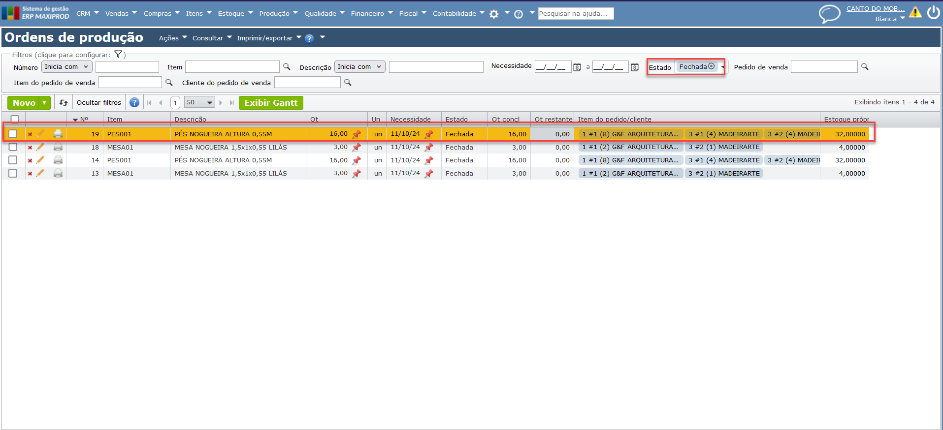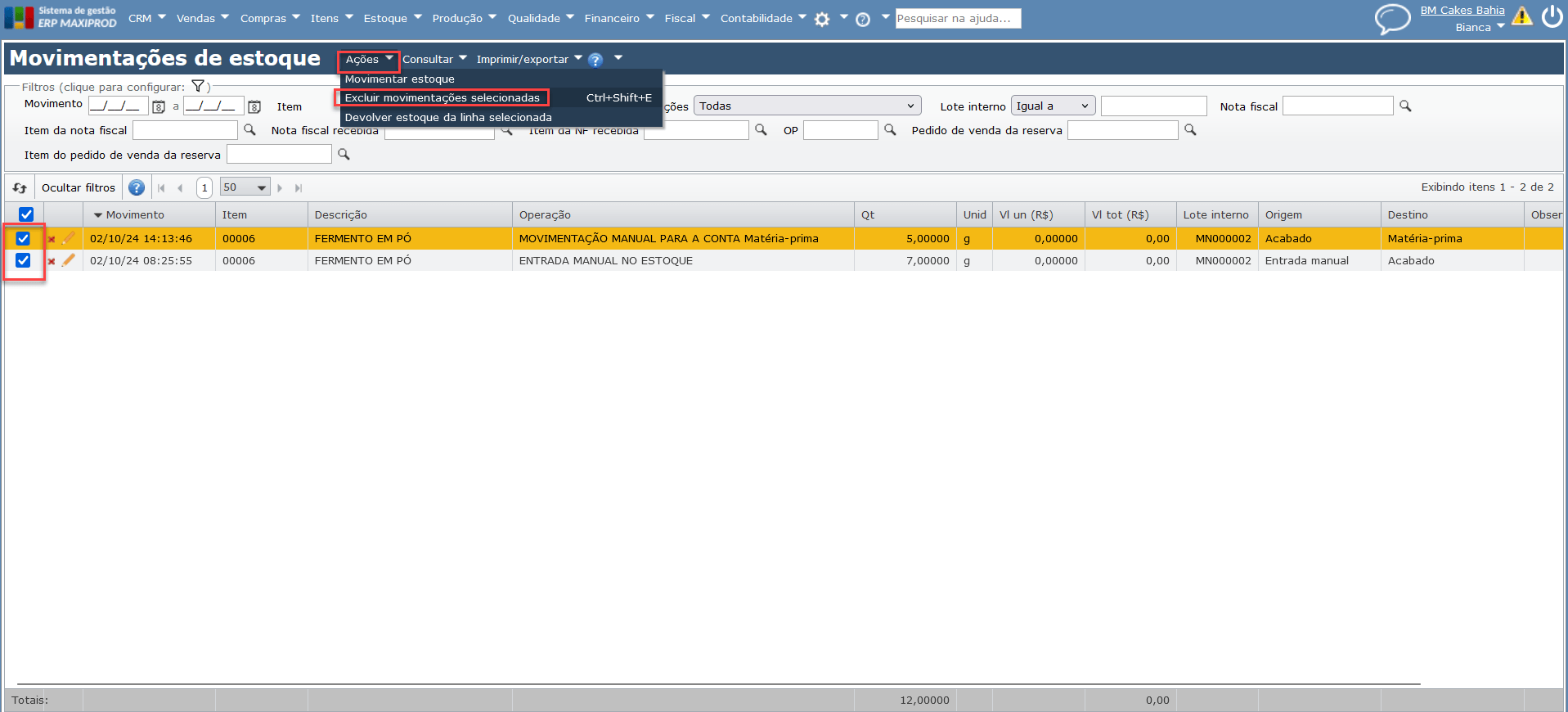 - Como desfazer movimentações de baixa e conclusões de ordem de produção?
