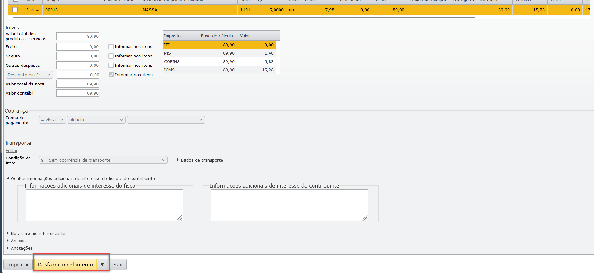 3) O mesmo ocorre com NFs recebidas. Para desfazer a movimentação de estoque, é necessário ir até a NF e desfazer seu recebimento.