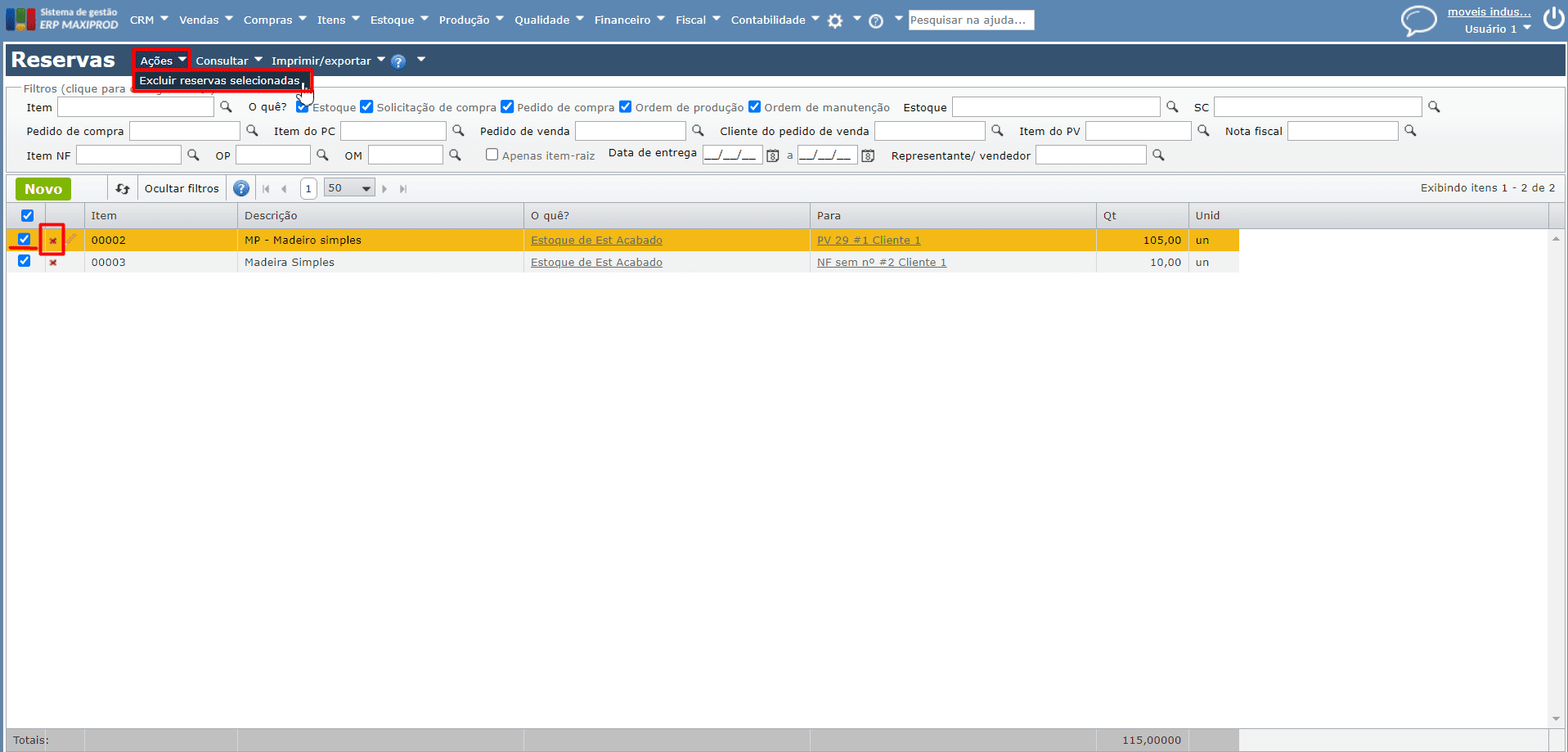 Quando uma reserva é desfeita no ERP MAXIPROD, algumas ações e mudanças ocorrem na situação do item e nos registros associados. As principais mudanças que ocorrem após a desfazer uma reserva são: