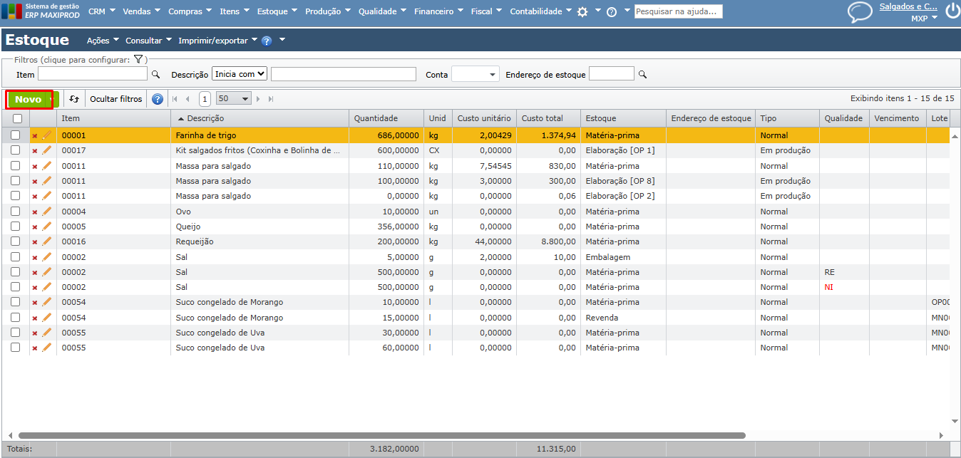 Ao iniciar a utilização do sistema ERP MAXIPROD, é necessário lançar o estoque inicial dos itens que a empresa já possui no estoque físico. Este lançamento pode ser feito de três formas: