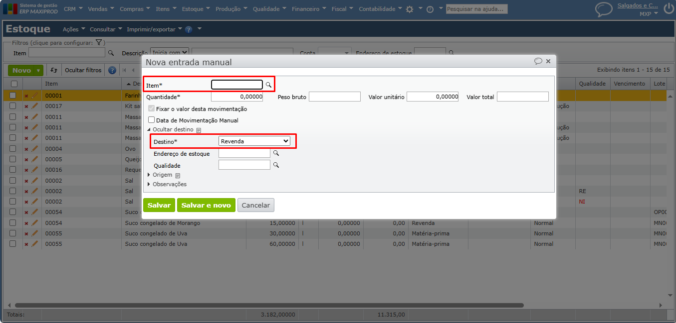 Quando somente alguns itens precisam ter o estoque inicial cadastrado, pode-se fazer o lançamento manualmente. Para saber mais sobre movimentações manuais de estoque, clique aqui.