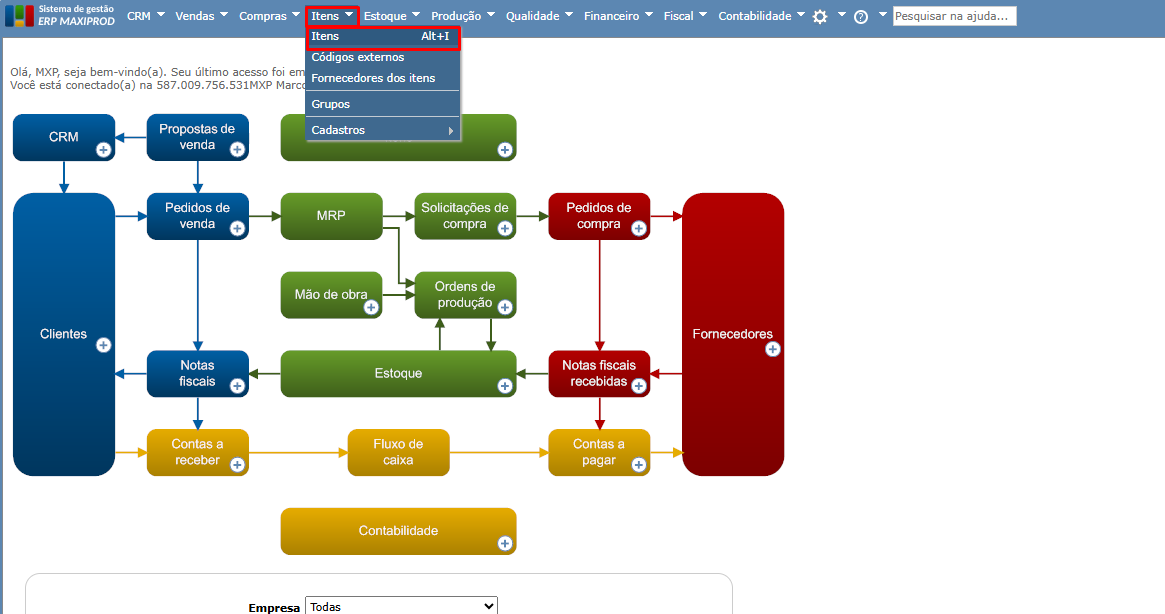 1) Acesse o menu “Itens > Itens”.