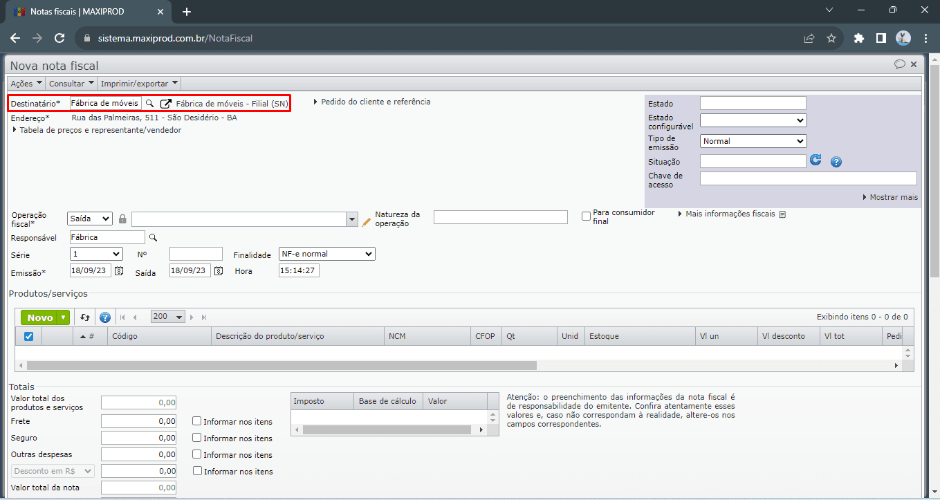 11) Após os devidos preenchimentos na nota fiscal, realize a emissão e faça o envio para a Sefaz.