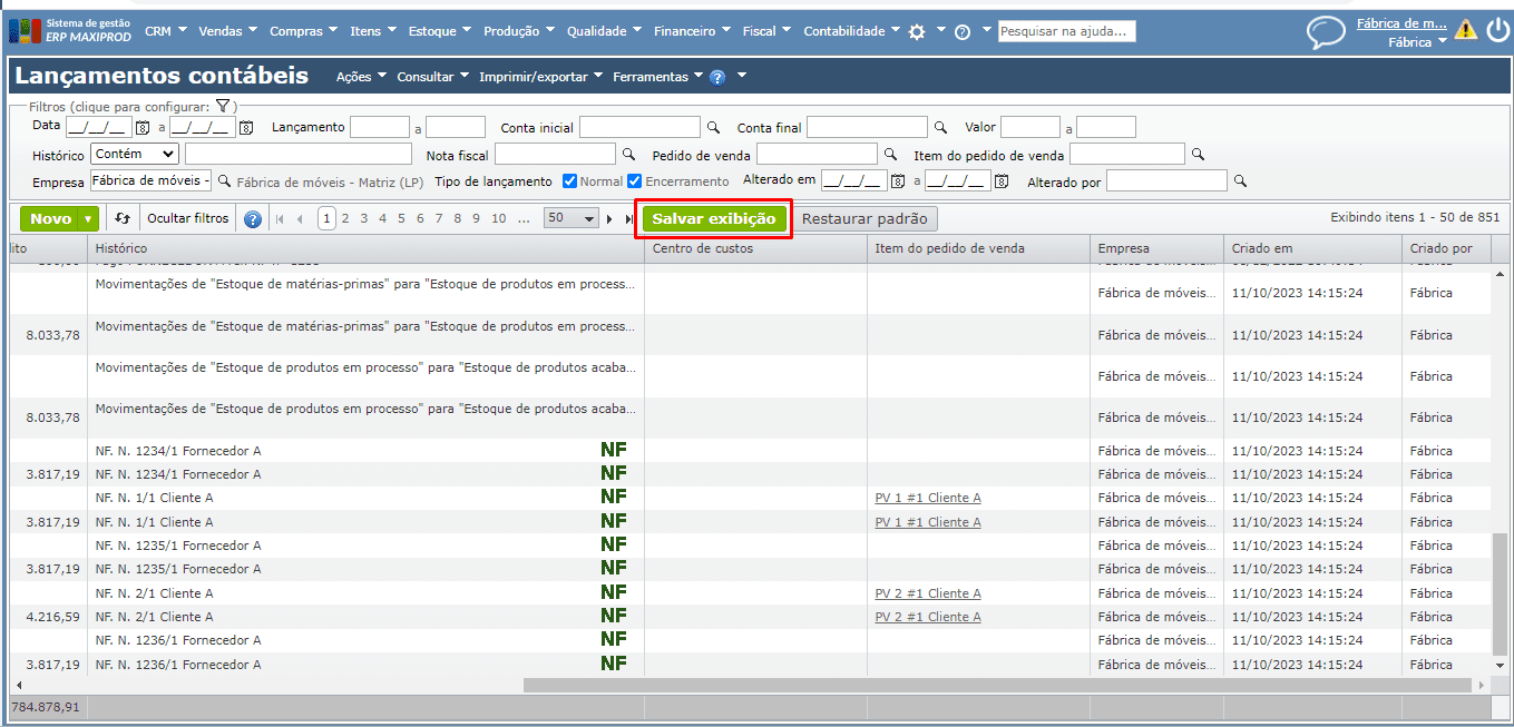 - Obs.: Para salvar a exibição da tela com as respectivas colunas, clique no botão verde “Salvar exibição”. Para saber mais sobre como personalizar a visualização das telas, clique aqui.