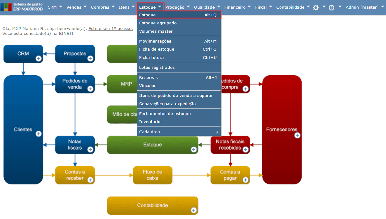 1) Vá ao menu “Estoque > Estoque”.